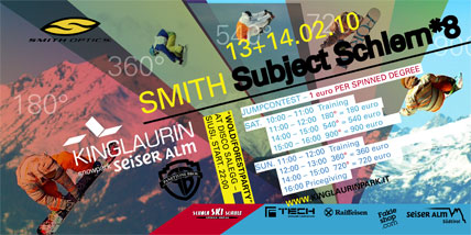Beim 8. Smith Subject Schlern im King Laurin Snowpark auf der Seiseralm gibt es für jeden gespinnten Grad einen Euro!...