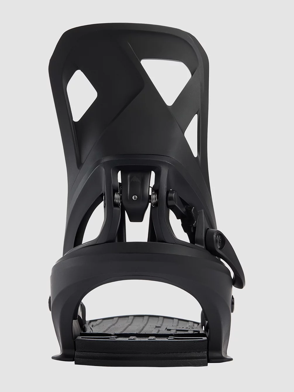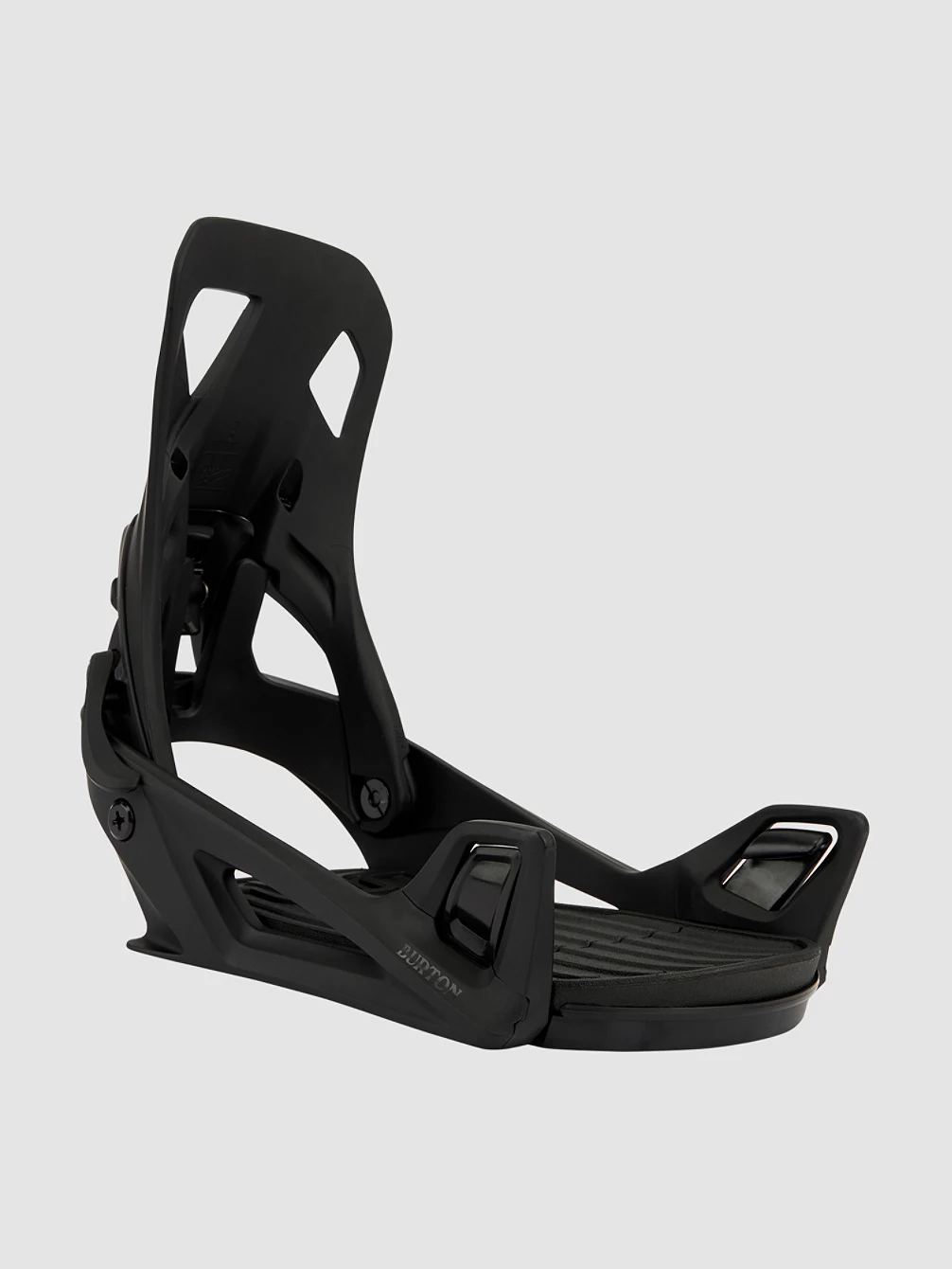 MIT EINEM SCHRITT IN DER BINDUNG. Schneller kommst du nicht in und aus der Bindung. Ein Schritt, ein Klick und schon bist du bereit! Wie das geht? Mit der Burton Step On® Re:Flex Bindung. Sie bietet eine intuitive Verbindung von Boots und Bindung und punktet mit Komfort, Performance und einer kinderleichten Bedienung. Drei Verbindungspunkte – zwei an den Zehen und einer an der Ferse – sorgen für unvergleichliche Einfachheit, Sicherheit und Boardkontrolle. Der Schnellauslösehebel garantiert einen schnellen, einfachen Ausstieg aus dem Board.Magst du es lieber fester oder weicher - Burton hat mehrere Step On® Boots zur Auswahl, damit du dein perfektes Set-up findest.HighbackDas Highback ist ein technisches Meisterwerk. Die einteilige Konstruktion sorgt für hohe Reaktionsgeschwindigkeit. Das Canted Hi-Back Design ist ergonomisch an deine Beine angepasst und erhöht somit nicht nur die Kontrolle, sondern vor allem den Komfort. Mit dem FLAD™ kannst du in Sekundenschnelle deinen Forward Lean ohne Werkzeug anpassen.BaseplateRe:Flex™ bietet mehr Flex und Boardfeeling als traditionelle Disc Bindungen. Die reduzierte, entkernte Grundplatte verringert das Gewicht und erweitert das Dämpfungspotential. Die einteilige Baseplate sorgt für einheitliche Reaktionsfähigkeit und optimales Fahrgefühl in jedem Terrain. Das 18 % Kurzfaser/Nylon Verbundstoffgemisch ist etwas reaktionsfähiger aber immer noch verspielt. Die Re:Flex™ FullBED Dämpfung bietet eine durchgehende Polsterung für maximalen Komfort und weniger Ermüden. Sie wird an der Baseplate verankert und ihr verdecktes Falltürdesign erleichtert den Zugang zur Montage-Hardware.