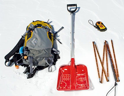 Wer suchet, findet. Das gilt auch bei einem Lawinenunglück. Die Frage ist nur, ob tot oder lebendig. Wer nach 15 Minuten einen freien Kopf hat und wieder Frischluft atmen kann, hat eine statistische Überlebenschance von über 90 Prozent. Danach sinkt diese Chance rapide. Nach 30 Minuten werden bereits mehr als 60 Prozent der Verschütteten tot geborgen. Diese Zahlen setzen jedoch voraus, dass man unter der Lawine eine kleine Atemhöhle hat, was keineswegs selbstverständlich ist. Ohne Atemhöhle sieht die Todesrate noch fataler aus! Wer sich im Ernstfall zum ersten Mal mit seiner Lawinenausrüstung auseinander setzt, steht da wie der grösste Depp – treffender: wie ein asozialer Penner. Also, meine lieben Freunde: Lernt und übt den Umgang mit Piepser, Sonde und Schaufel und schreibt euch folgende zwei Begriffe hinter die Ohren: „Airport Approach“ für die Suchtechnik mit dem Piepser und „V-Formation“ für das Vorgehen beim Schaufeln. Mit diesen beiden einfach zu merkenden Methoden geht man im Unglücksfall am schnellsten und effizientesten vor. Was Airport Approach und V-Formation im Detail bedeuten, erklären wir in Kürze, zuvor wollen wir noch einen Blick auf eure persönliche Lawinenausrüstung werfen.