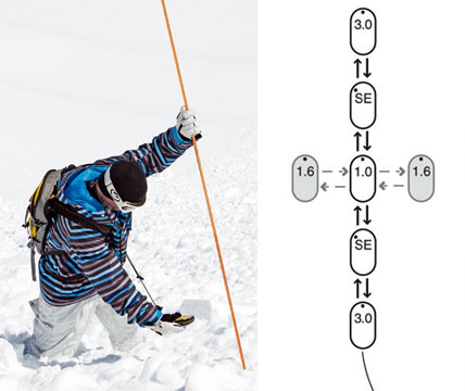 Die vier Phasen bei der Ortung eines Lawinenopfers: