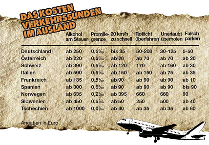 Das kümmert dich nicht? Falls du erwischst wirst, ist deine Taktik, auf dumm zu machen und zu behaupten, du hättest kein Geld und keine Kreditkarte dabei, und verlangst, dass sie dir den Strafzettel nach Hause schicken sollen – wo er dann im Papierkorb landet? Nun, das kann durch aus funktionieren, am ehesten noch in der Schweiz. Wenn dich aber die netten Italiener oder Franzosen anhalten, nützen die kreativsten Ausreden wenig. Die Polizei dort kann kurzerhand dein Auto beschlagnahmen, bis du die Strafe beglichen hast.