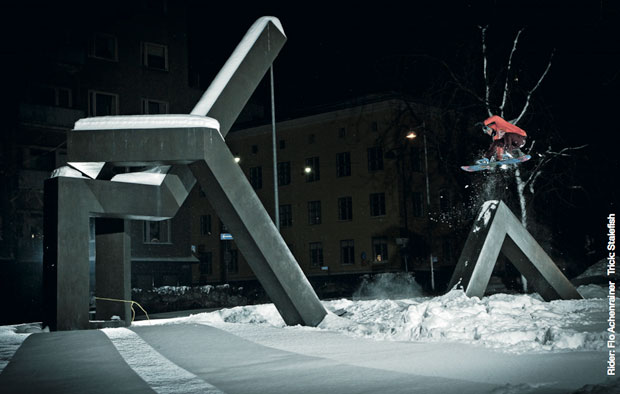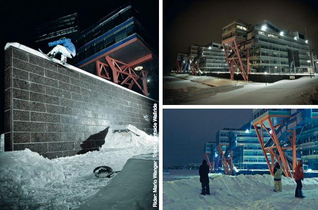 Sie dürfen in keinem Snowboard-Film oder -Magazin fehlen: die Urban Jibs. Für einen Jib-Shot muss man aber mehr tun, als nur irgendwo irgendein Geländer runterzusliden. Der geeignete Spot will erst einmal gefunden und auf seine Shred-Tauglichkeit überprüft werden. Dann müssen Anfahrt, Obstacle und Landung vorbereitet und ausgeleuchtet werden, bevor der Spot zu guter Letzt endlich gejibbt werden kann. Dass auf einem City-Rail-Trip nicht immer alles reibungslos läuft, musste im vergangenen Winter die Mog-Crew erfahren. Als der Schnee im Dezember 2010 in den Alpen auf sich warten ließ, drehte die aus den Alpen stammende Crew den Spieß um und Fotograf Michael Obex, Mog-Production-Filmer Martin Venier und die Fahrer Sebi Geiger, Flo Achenrainer, Mario Wagner und Robert Dangl machten sich auf in den hohen Norden nach Helsinki, der Jib-Hauptstadt Europas. Eine Auswahl der Spots und Shots, die die Crew in der finnischen Hauptstadt in Angriff nahm, bekommt ihr hier mit einigen Tipps und Tricks zum richtigen City-Jibben geliefert. Wer die Bewegtbilder zu den Fotos sehen und den Unterschied der Wirkung von Film zu Foto vergleichen möchte, kann sich „The Reality“ hier kostenlos reinziehen.