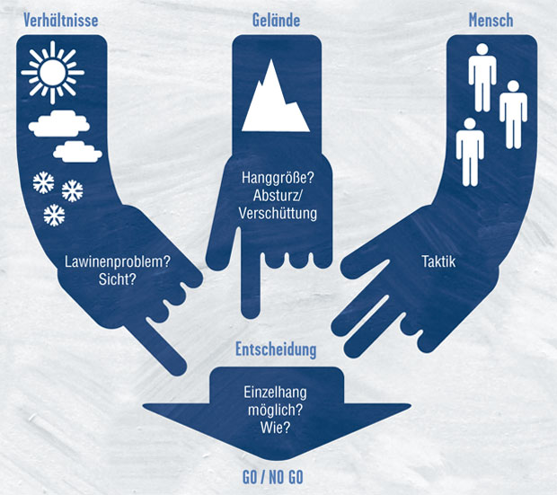 Der letzte Go-/No-Go-Entscheid erfolgt vor dem Befahren jedes einzelnen Hangs.
