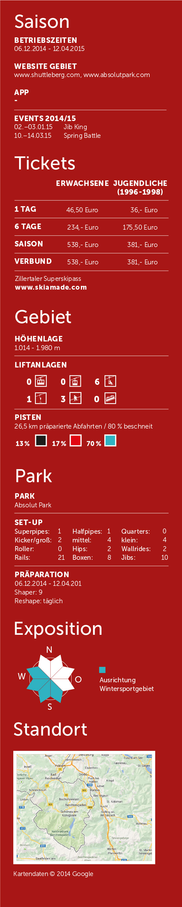 Die Höhenlage des Wintersportgebietes am Kitzsteinhorn reicht von 911 bis auf 3.029 Meter. Da überrascht es nicht, dass bei einer solchen Ausdehnung auch für Freerider einiges geboten ist. Dass die Tiefschnee-Addicts hier mit offenen Armen empfangen werden, sieht man an der Initiative Freeride XXL. Hier gibt man Freeridern am Kitzsteinhorn einige nützliche Helferlein mit auf den Weg. So wurde nahe dem Alpincenter auf 2.450 Meter eine Freeride-Info-Base errichtet. Sie dient als zentrale Anlaufstelle für Powder-Hungrige und klärt mit Übersichts- und Topo-Karte über fünf ausgewiesene Varianten auf, die allesamt ohne Aufstieg direkt von den Liftanlagen aus erreichbar sind. Zusätzlich findet man dort auch den aktuellen Lawinenlagebericht, einen Checkpoint für das LVS- Gerät sowie eine Kontaktliste mit allen relevanten Notrufnummern. An den Einstiegen zu den fünf ausgewählten Runs dienen euch dann die dort aufgestellten Infotafeln als letzte Gedächtnisstützen in Sachen Safety, bevor ihr in den Powder abtaucht. Die längste dieser Routen ist die X2, die sogenannte Westside Story. Hier überwindet man vom Startpunkt an der Bergstation der Kristallbahn bis hinunter zum Langwiedboden 700 anspruchsvolle Höhenmeter. Auf den Spuren der Freeride-Elite kann man wandeln, wenn man sich für die X4, den Jump Run mit zahlreichen natürlichen Absprüngen entscheidet. Hier findet jährlich mit dem X Over Ride ein etablierter Big-Mountain-Contest statt, der auch am letzten März-Wochenende 2015 wieder einige Freeride-Profis ans Kitzsteinhorn locken wird.
