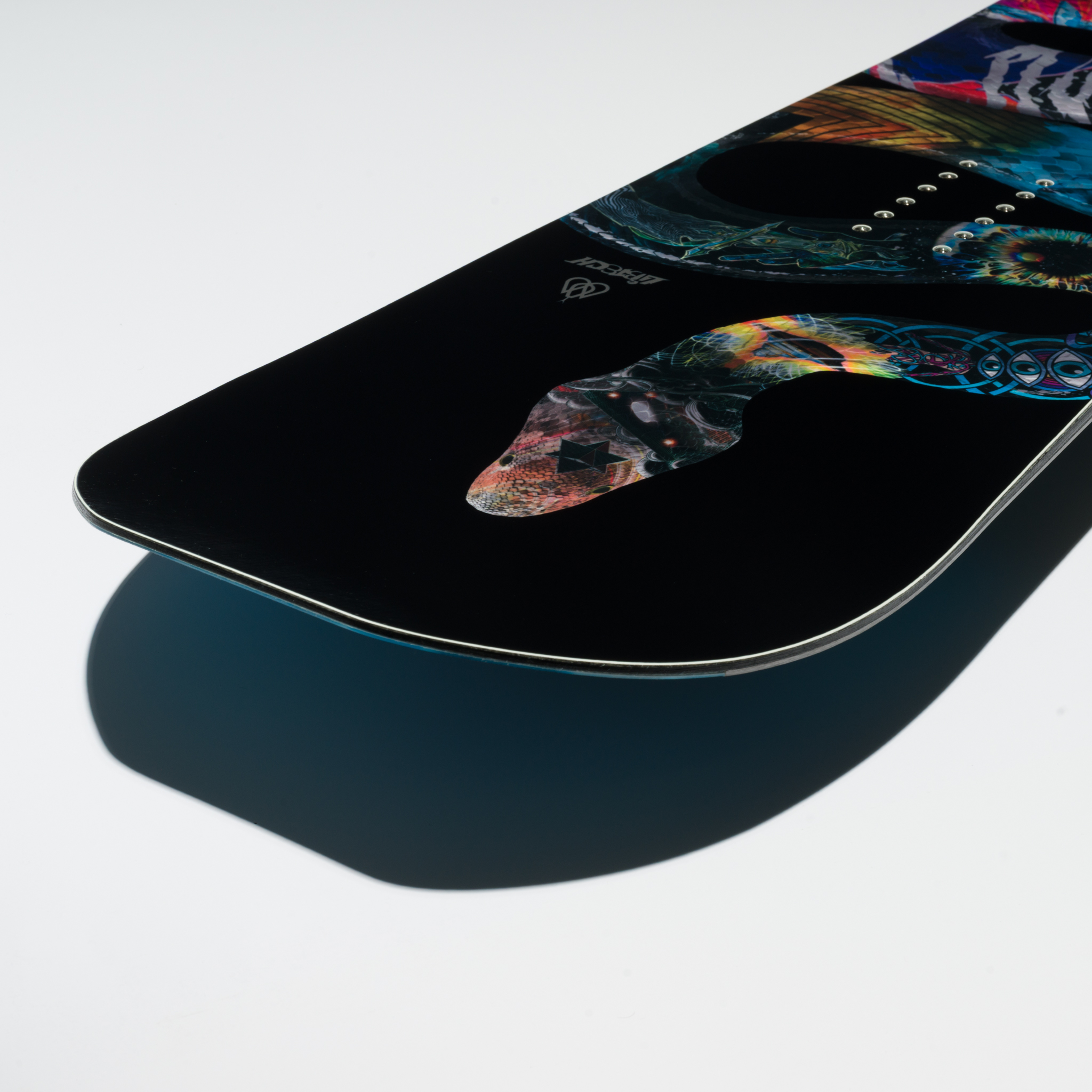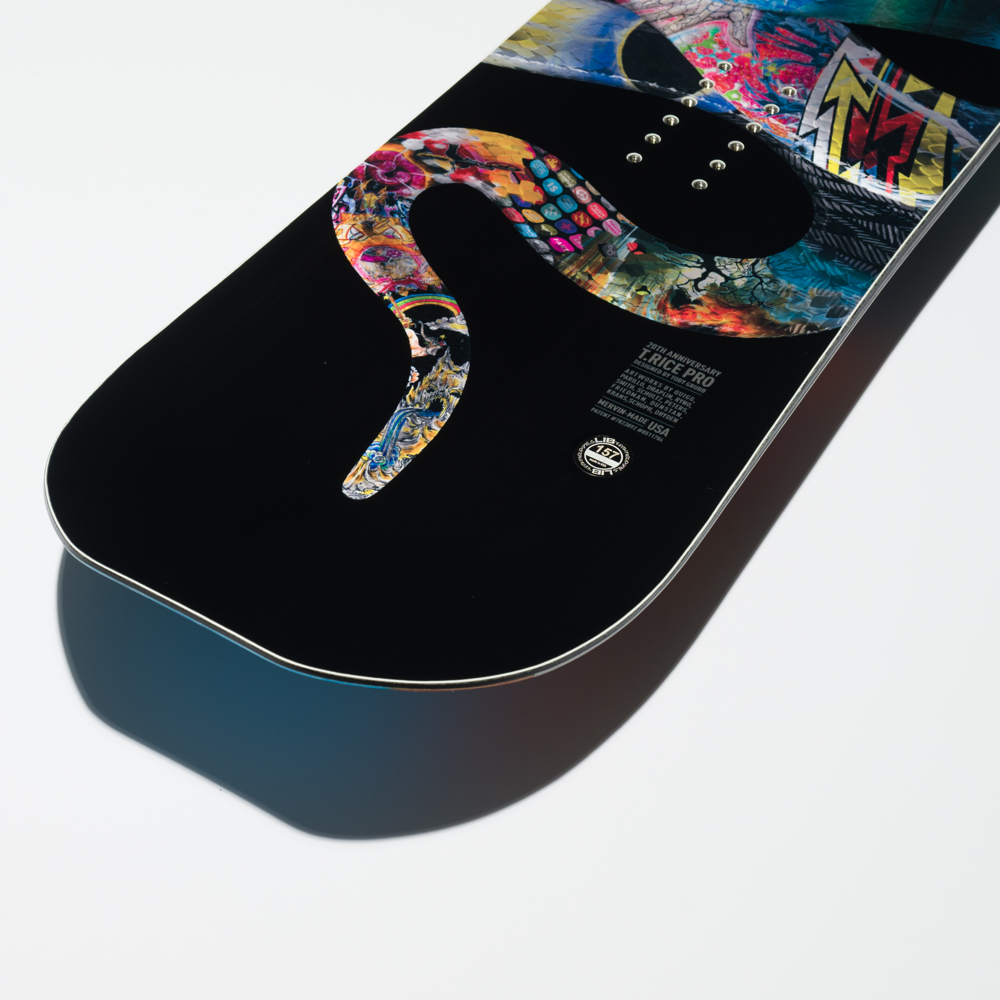 Vom Contest-Startgate bis zu abgelegenen Big-Mountain-Lines, vom Podium bis zur Anflugschneise einer 15-Meter-Fichte. Travis hat seine T.Rice Pro in Terrain bewegt, das für viele Fahrer unvorstellbar ist. Und jedes einzelne Jahr dieses Boards war Teil eines sorgfältig entwickelten Konzepts: ein direktionales Twin, midwide Shapes, der Hybrid-C2-Camber mit seiner präzisen Kombination aus Pop und Kontrolle sowie die legendären Magne-Traction®-Kanten, die wie ein Steakmesser durch harten Untergrund schneiden.