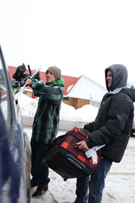 Heute haben es nur der Fichtl und ich auf die Piste geschafft. Der Wind in den chilenischen Bergen hat dafür gesorgt, dass unser kleiner Schweizer heute den Schwanz eingezogen hat und im Bett geblieben ist. Auch unser Knipser zog es vor, heute einen Arbeitstag einzulegen und die Resultate von gestern zu sortieren. Alle Lifte laufen heute nur im Schleichgang und somit beginnen wir schon während der Liftfahrt, Tricks zu üben.