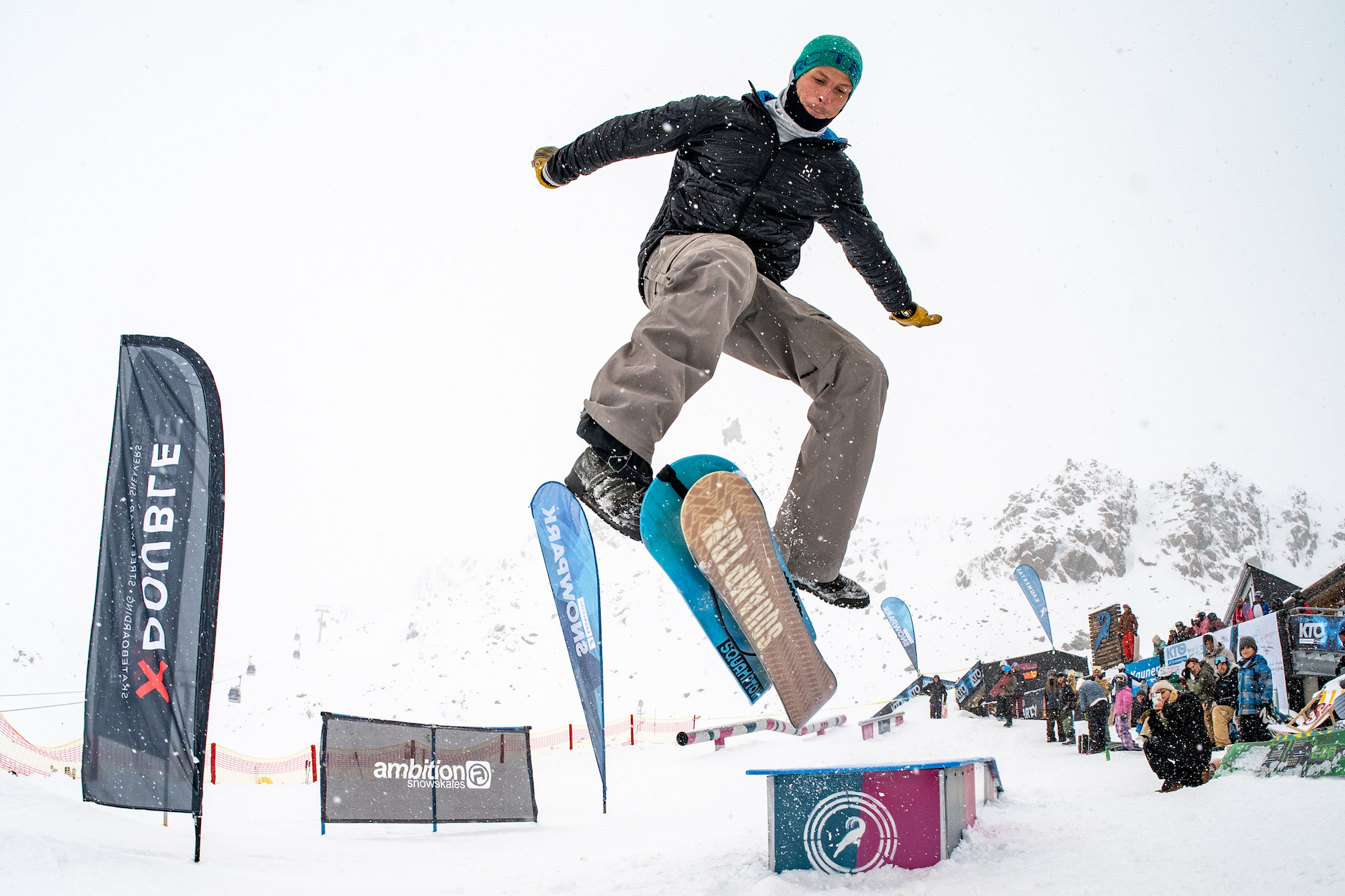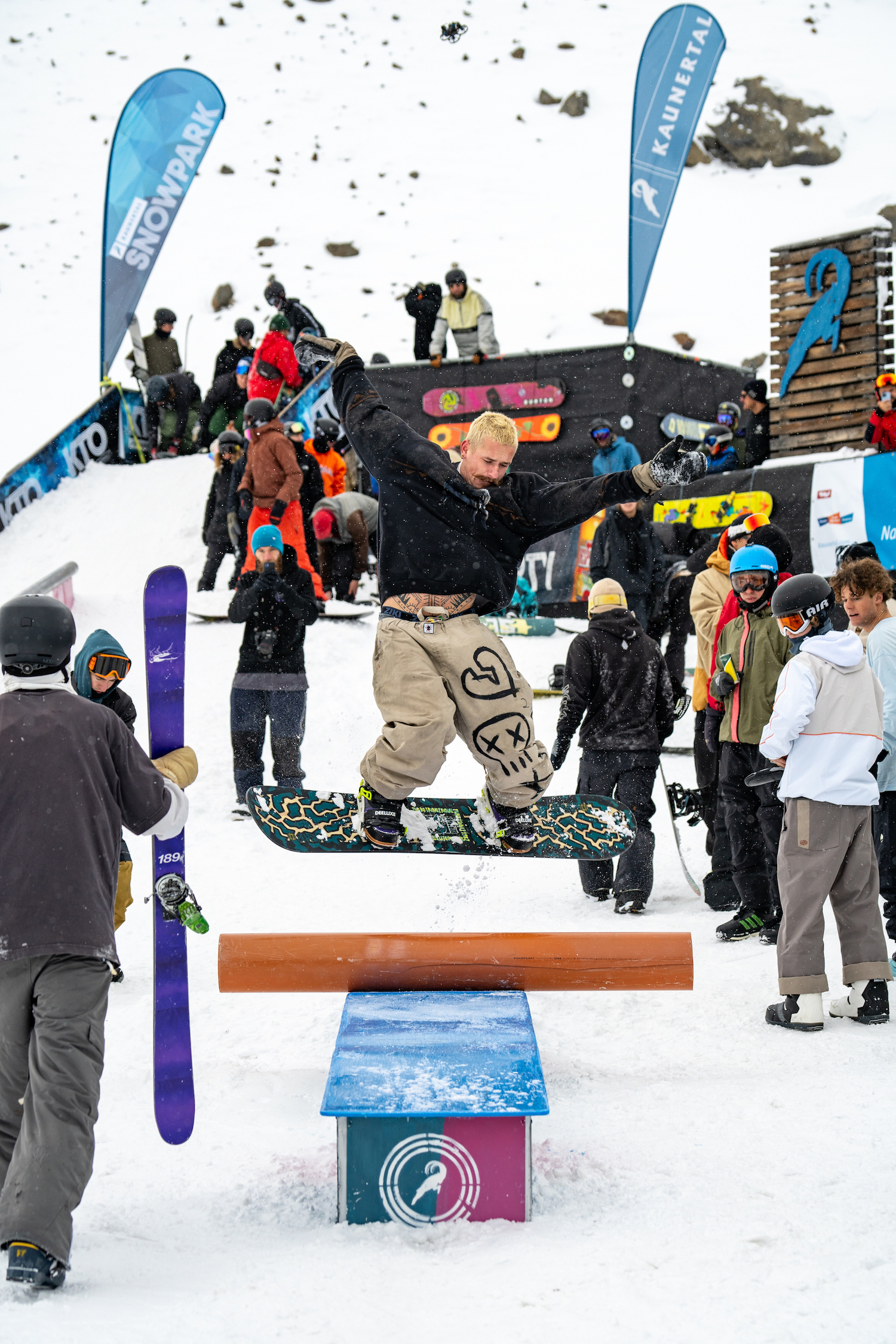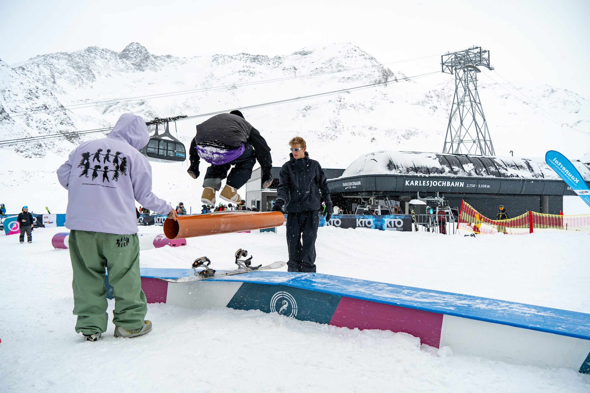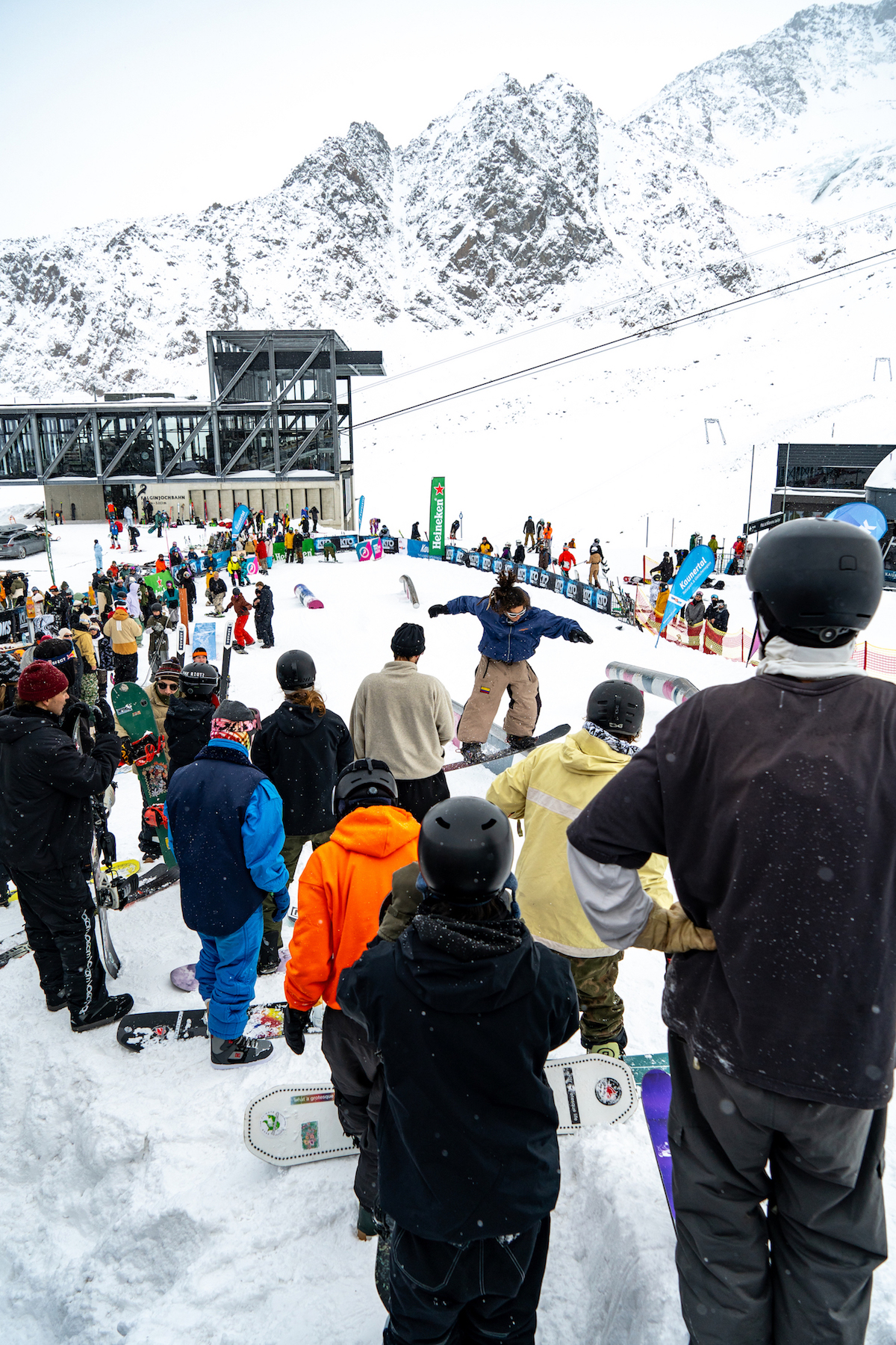 Unter den Besucher:innen tummelten sich neben Legenden wie Gigi Rüf und Julia Baumgartner, die viel Zeit ihrer Snowboardkarriere am Kaunertaler Gletscher verbrachten, lokale Rider, junge Nachwuchstalente und internationale Stars wie Johnny Hanchek aus den USA. Die traditionsreichen Cash for Tricks Sessions am Jib’n’Skateplayground brachten somit ein buntes Feld an Teilnehmer:innen zusammen, die sich gegenseitig pushten und feierten.