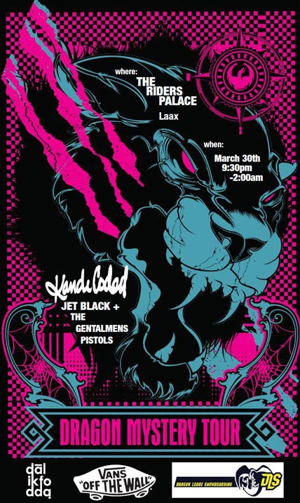 Die Dragon Mystery Tour 2009 startet beim “Brits Music and Snowboard Festival” vom 28.03.-04.04.2009 in Laax. Mit dabei ist niemand geringeres als Jamie Lynn und seine Band „Kandi Coded“.