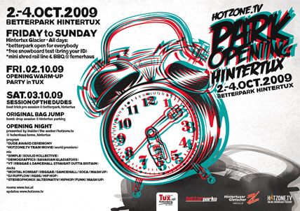Am Abend ist dann wieder Party angesagt. Und zwar in der Hohenhaus Tene in Hintertux. Neben fettem Sound von Mortal Kombat, DJ Rufflow und Stereophonix an den Plattentellern sowie Simple, Demograffics und YT an den Mics gibt es die Session of the Dude-Award Ceremony und die hotzone.tv Team Movie-Premiere zu sehen.