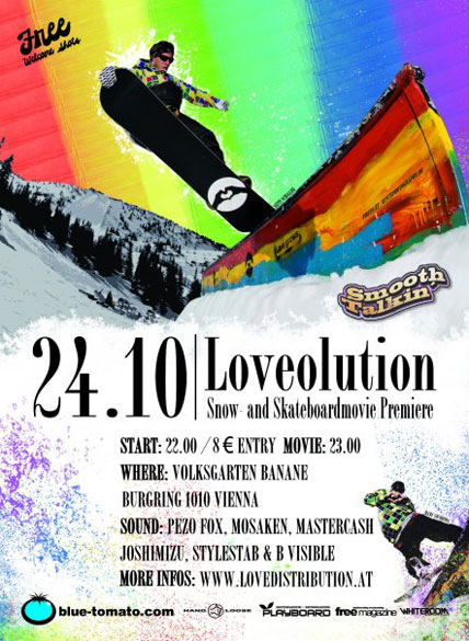 Wir lieben Snowboarding! Und dass wir das nicht alleine tun, haben wir jetzt sogar auf dem Papier: Bei der Love Distribution steht die Liebe zum Boardsport ebenfalls im Vordergrund. Und damit wir uns alle an Downdays und im Sommer gut an das erinnern können, was wir am liebsten tun, haben die Love-Jungs ganz heimlich einen Snowboard-Teammovie produziert. Am 24.10. führen euch Fahrer wie Marc Swoboda, Seppi Scholler, Matevz Pristavec, Flo Mausser, Thomas Feurstein und Dominik Wagner in die Geheimnisse der Liebe ein.