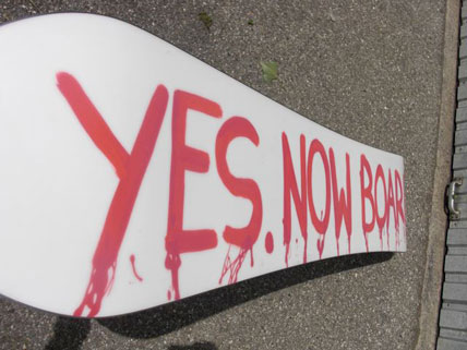 Dass fast alles erlaubt ist und es den Jungs nicht auf’s Geld ankommt, sieht man schon am aktuellen Höchstgebot: Ein User bietet für das Board einen Euro, ein Liftticket, ein Bier, ein Stück Kuchen, einen alten Sneaker, eine Telefonnummer, eine Flasche Whisky, eine High School Musical 3-DVD und eine Eiffelturm-Schneekugel.