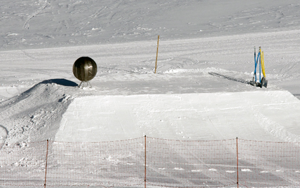 Die F-Tech Crew und die Gentlemen Riders haben ganze Arbeit geleistet und den Park im Schnalstal so gut wie fertig gestellt. Derzeit werden die letzten Arbeiten an der Big Berta mit ihrem 20-meter-Table und der brandneuen Funbox mit Jib-Kugel vorgenommen. Der Park bleibt in dieser Form bis Mitte Dezember bestehen und wird anschliessend in kleinerer Ausführung ins Tal verlegt. Ab Februar throhnt der Gentlemens Nitro Park Schnalstal in maximaler Ausführung am Grawandgletscher.