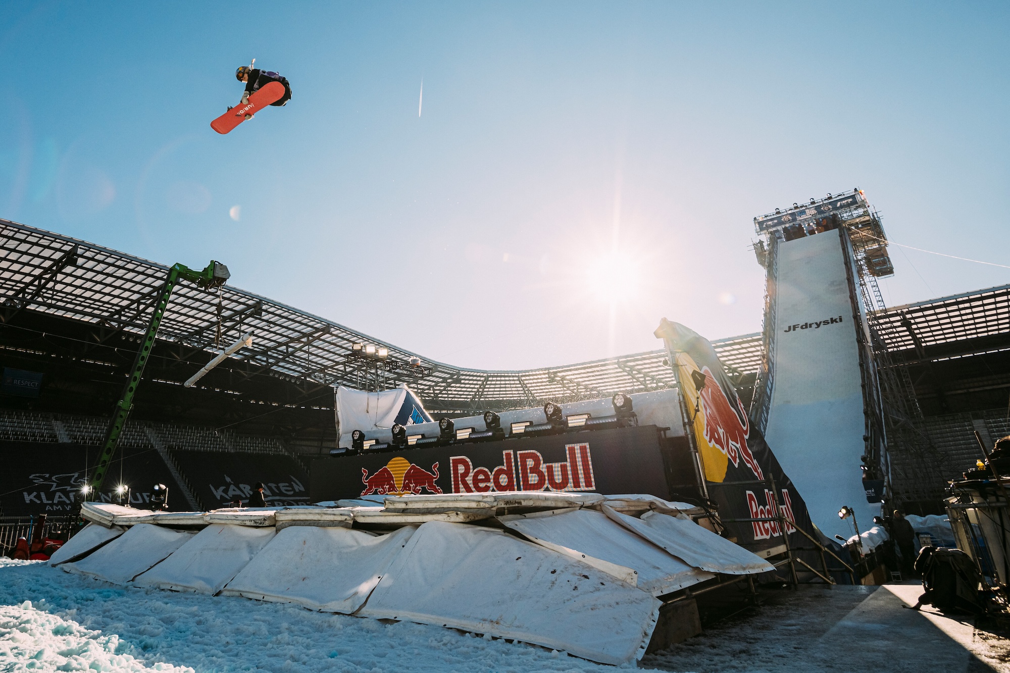 Für die zweifache Big Air Olympiasiegerin und Millstätterin Anna Gasser ist der Weltcup in Klagenfurt direkt vor ihrer Haustür etwas ganz Besonderes, mit Familie und vielen Freunden im Publikum. Anna startet mit einem Backside Double 10 im ersten Run und zeigt einen Cab Double 9 im zweiten Run. Beim dritten und letzten Run versucht sie mit einem Cab Triple 12 den Schwierigkeitsgrad zu steigern, um den Sprung aufs Podium zu schaffen, steht den Trick allerdings nicht und belegt am Ende den fünften Platz: „Ich habe auf so einer Rampe noch nie einen Triple gemacht, deshalb hab ich ein wenig Respekt davor gehabt, ich wollte ihn noch nicht im zweiten Run probieren und erst schauen, ob’s vielleicht reicht. Aber ich muss sagen, heutzutage, wenn ich auf dem Podium sein will, muss ich meine schwersten Tricks auspacken. Wäre ich den letzten gestanden, wäre ich am Podium gewesen. Es war ganz knapp. Das Ergebnis ist heute nebensächlich, ich bin einfach so happy, vor so einer Kulisse zu springen. Die Stimmung war so mega. Auch wenn ich heute nicht gewonnen habe oder unter den Top 3 war, war es eines der schönsten Gefühle in meiner Karriere, daheim zu springen.“