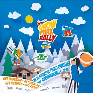 Die lässigste Online-Foto-Competition des Winters startet wieder durch! Bei der BURN SNOWPARK RALLY heißt das Motto: Mitmachen kann jeder! Denn wer mit Ideen und Kreativität arbeitet, kann hier auch ohne dicke Fotoausrüstung feine Preise absahnen. Ab heute, 15. Dezember 2010, schicken euch zwei Völkl-Teamrider per Video-Message auf die erste von drei Missionen des Winters. Den Auftrag könnt ihr dann im Snowpark eurer Wahl ausführen, möglichst kreative Fotos schießen und das Ergebnis auf www.snowparkrally.com hochladen – Originalität und Fun sind dabei wichtiger als technische Foto-Skills! Die Sieger jeder Mission werden zum Finale nach Leogang eingeladen.