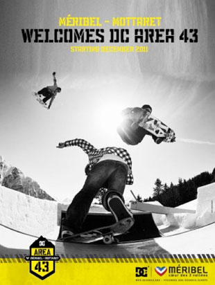 Seit November 2011 ist DC stolzer Besitzer des Area 43 Snowparks in Méribel-Mottaret (F). Die Erwartungen sind hoch, die Weichen für einen durchschlagenden Erfolg sind aber gestellt; 2400m Höhenmeter, 24 Schneekanonen, Module von hoher Qualität und perfekte Schneeverhältnisse in den Französischen Alpen. Ebenfalls nicht zu verachten ist die Top- Lage der Location – perfekt gelegen zwischen Courchevel, Les Ménuires und Val Thorens (F).