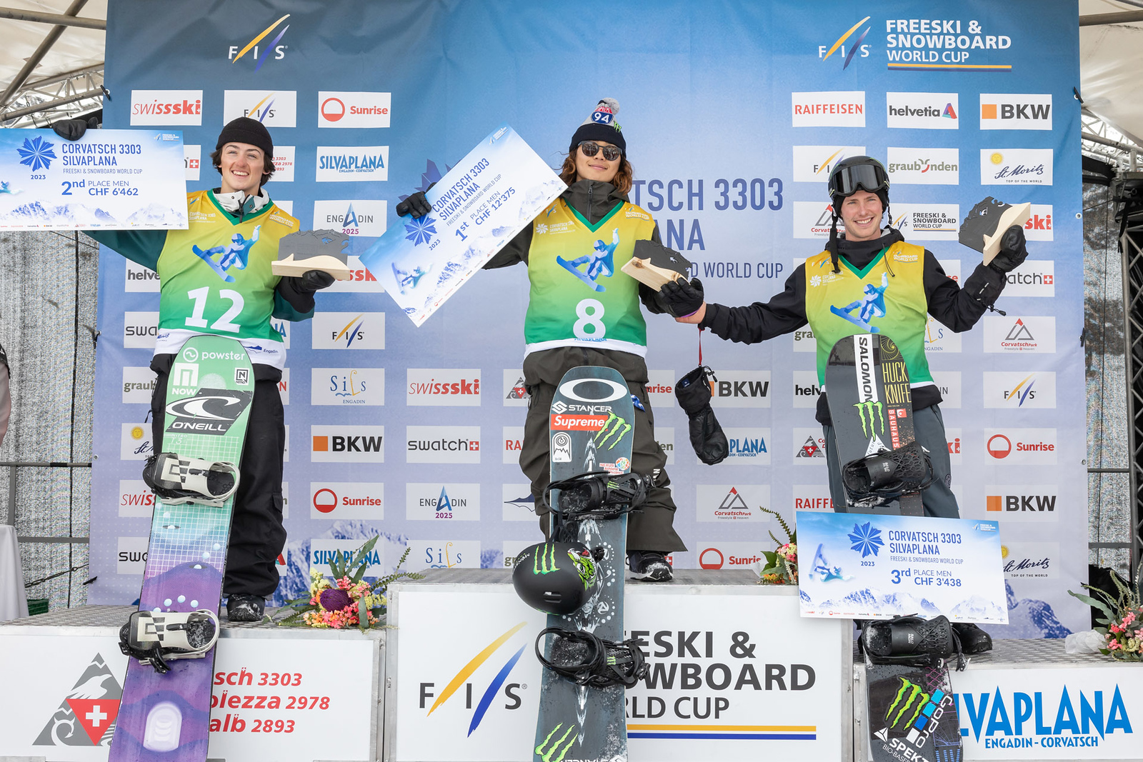 1440, 1620, 1800 – Diese phänomenale Trick-Combo auf den Jumps landete der erst 17-jährige Taiga Hasegawa in seinem zweiten Run und sicherte sich damit verdient den Sieg mit dem Tageshöchstscore von 92 Punkten. Liam Brearley (CAN) und Routinier Sven Thorgren (SWE) freuten sich, die Weltcupsaison als Zweit- und Drittplatzierter auf dem Podium zu beenden. Sven meinte: „Das war ein schöner Saisonsabschluss für mich, mein Riding hat sich heute richtig gut angefühlt.“ Er sprach in den höchsten Tönen über den Park: „Der Grund, warum so viele von uns nach Silvaplana kommen, ist, dass dies üblicherweise der beste Kurs der Saison ist! Taiga hat eine der verrücktesten Jump-Lines gestanden, die wir jemals in einem Slopestyle Contest gesehen haben, das spricht für sich selbst.“
