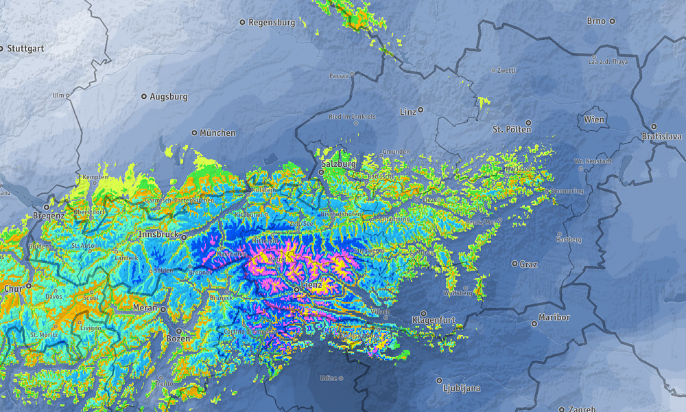 Wie ihr oben im Bild sehen könnt, legt die gute Schneefee am Wochenende nochmal eine Schippe obendrauf (Quelle: Bergfex)