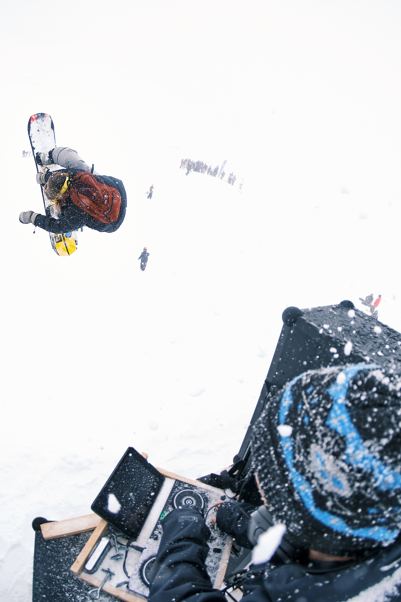 Die Gelegenheit, um die Energiepauschale mit ein wenig Taschengeld aufzubessern, boten am Freitag die Cash 4 Tricks Session an den Rails und die Burton Quarterpipe Session. Die schlechte Sicht führte zu noch mehr Zuschauern als sonst, die statt selbst durch den Park zu lappen den Pros bei den Sessions zuschauten – oder noch besser, selbst mitfuhren.