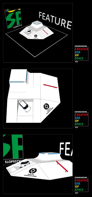 Der MINI Creative Use of Space (CUoS) Award geht bei den Burton Canadian Open in die zweite Runde. Austragungsort und zweiter Tourstopp der Burton Global Open Series (BGOS) ist vom 30. Januar bis 5. Februar 2012 der Canada Olympic Park in Calgary. Die COP Shape Crew um Head-Shaper Ryan Neptune hat innerhalb des MINI CuOS Awards die Möglichkeit ein 5.000 US Dollar teures Feature aufzustellen und sich mit einer möglichst kreativen Umsetzung den Creative Use of Space Slopestyle Feature Award der BGOS zu sichern.