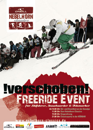 Die teils schwierige Schneelage im Allgäu macht den Organisatoren der Nebelhorn Classics ordentlich zu schaffen. Statt am kommenden Wochenende stattzufinden muss das Off-Piste-Rennen auf den 19.03.2011 verschoben werden.