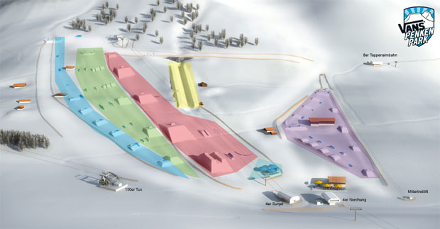 Zum Beginn dieser Saison wurde die Fläche für den Vans Penken Park nochmals vergrössert und die Medium- sowie der Kids-Line sind weiter optimiert und klarer von den Pro Lines abgetrennt. Mit einer Investition der Mayrhofner Bergbahnen von über 100.000 Euro in neues Equipment in den verschiedenen Lines werdet ihr bei eurem nächsten Besuch feststellen, wieviele neue Rails, Boxen und andre Jibs es jetzt gibt! Einige Pros, wie Elias Elhardt, Werni Stock und viele andere wurden heute schon gesichtet! Wer nicht warten will, der kann sich auf dem neuen 3-D Parkplan online über die neuen Obstacles informieren.