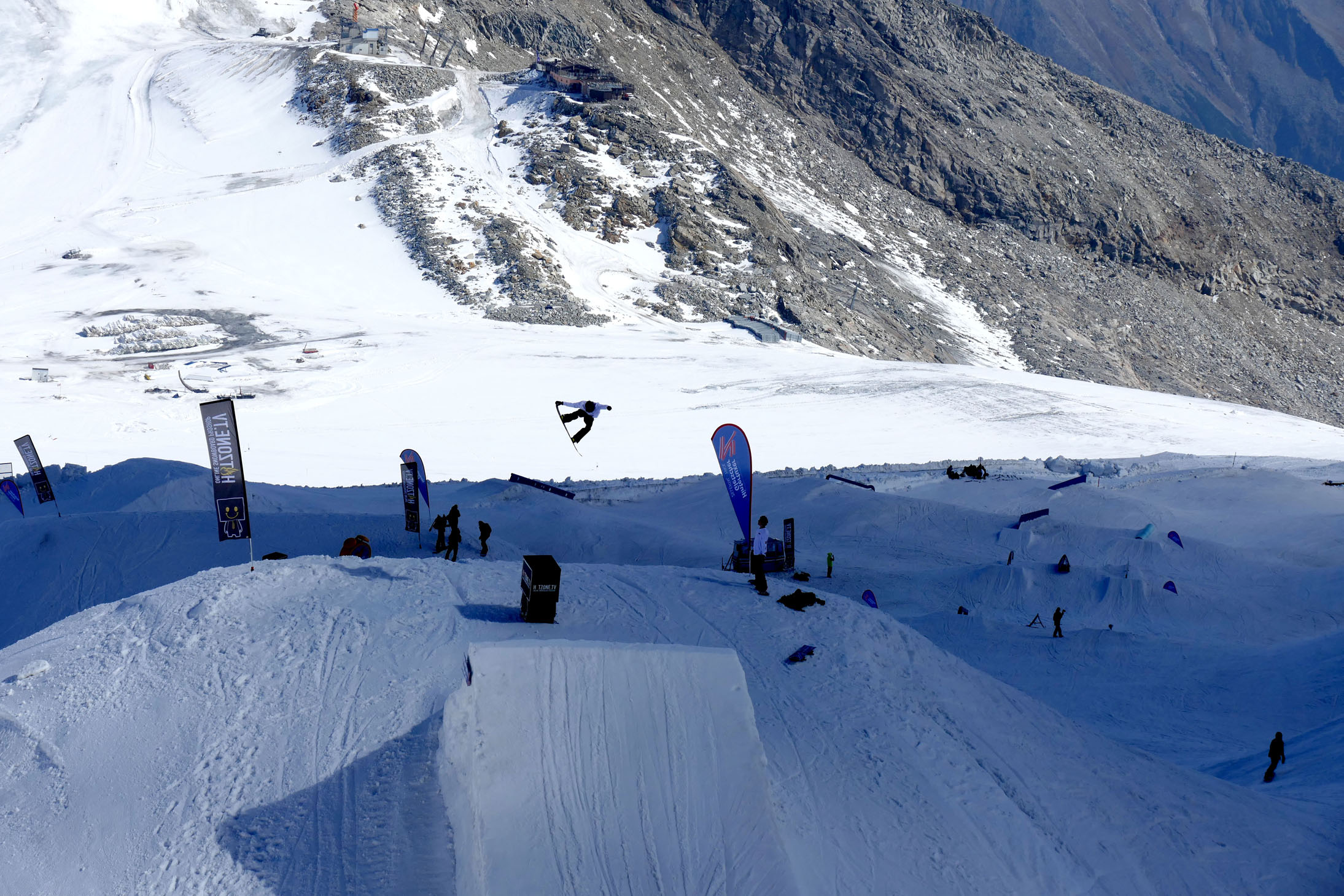 Der zweite Tag ließ noch etwas wettertechnisch auf sich warten. Der Nebel hing noch lange an der Gefrorenen Wand, aber lichtete sich gegen den Nachmittag auf und das Freestyle-Programm konnte weiter gehen. Die Pro Kicker Line blieb zwar den ganzen Tag gesperrt, aber dafür konnte man die Medium Line zerlegen. Die Kids hatten dagegen Spaß beim GoPro Kids Shoot. Dort erhielten sie von den erfahrenen Ästhetikern Tipps zum Thema Freestyle-Snowboarding. Auf dem Parkplatz konnte man sich im Opening Casino mit Roulette, Blackjack und Poker und in einem Bike Pumptrack austoben. Zudem wurde die Menge mit Live Musik in Stimmung gebracht und auf die legendäre hotzone.tv Hintertux Opening Party am Abend vorbereitet.