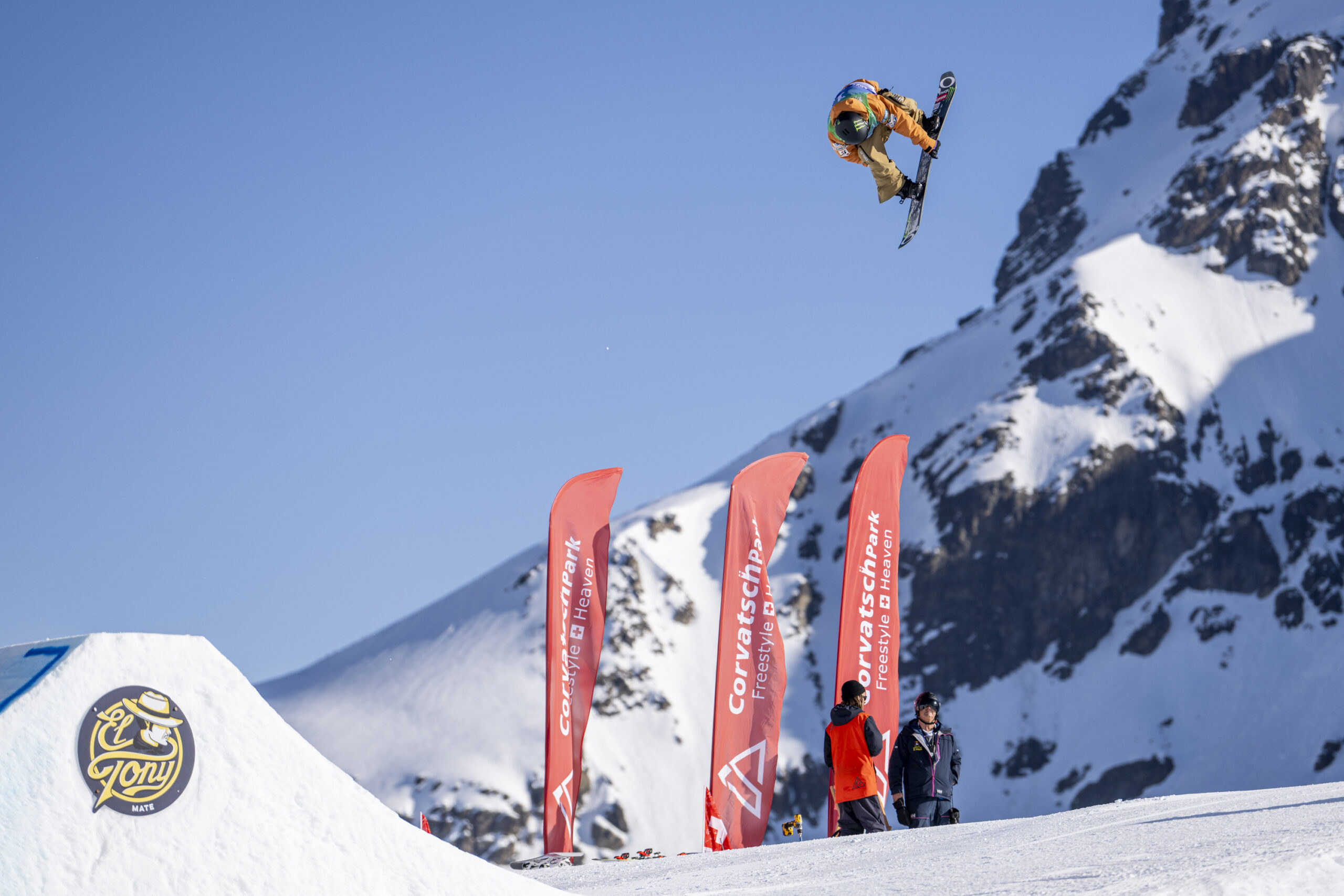 Bei Sonnenschein und traumhaften Panorama zeigen die 10 Frauen und 16 Männer im Corvatsch Park auf 2.700 m.ü.M Freestyle vom Feinsten.
