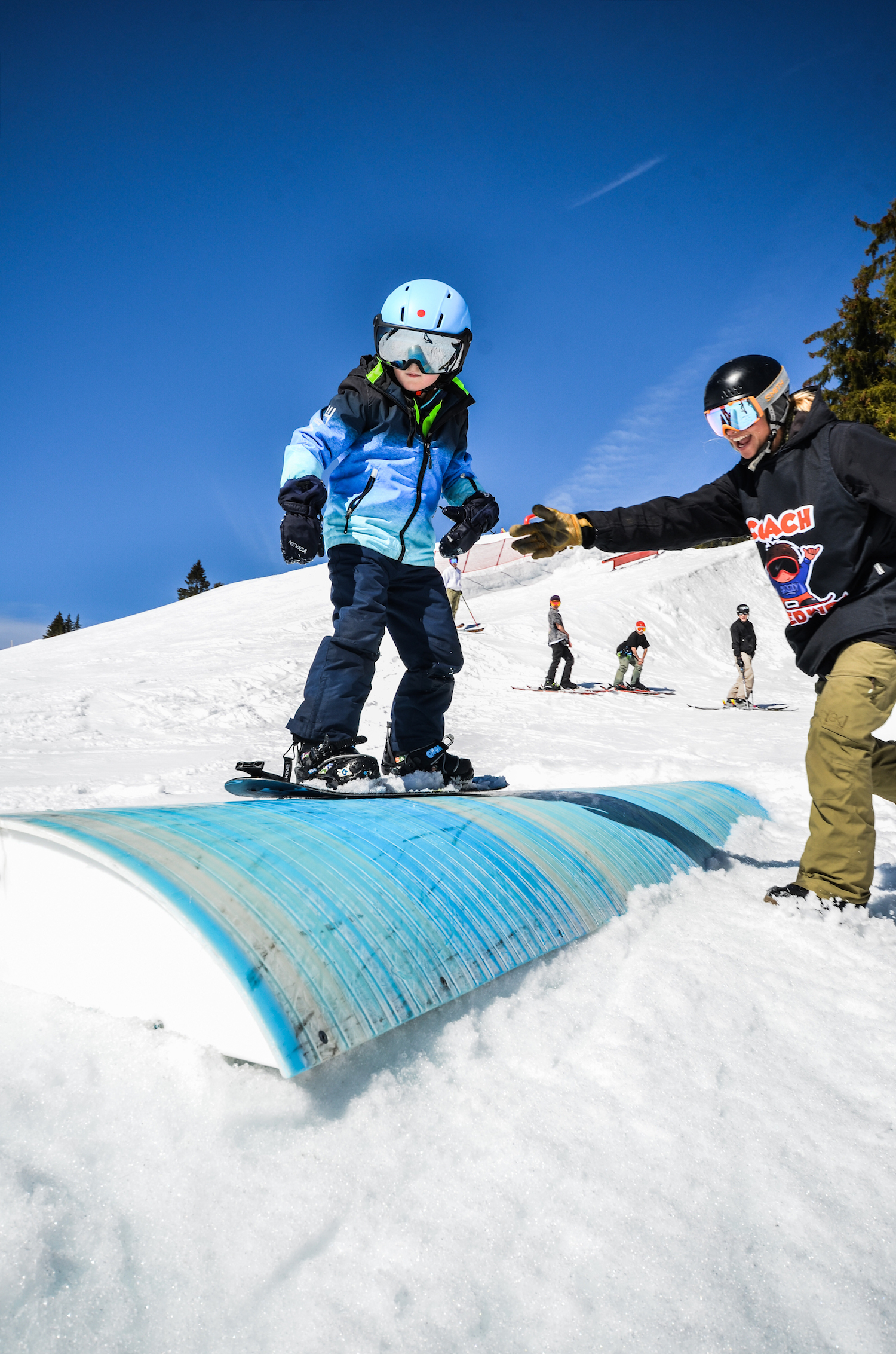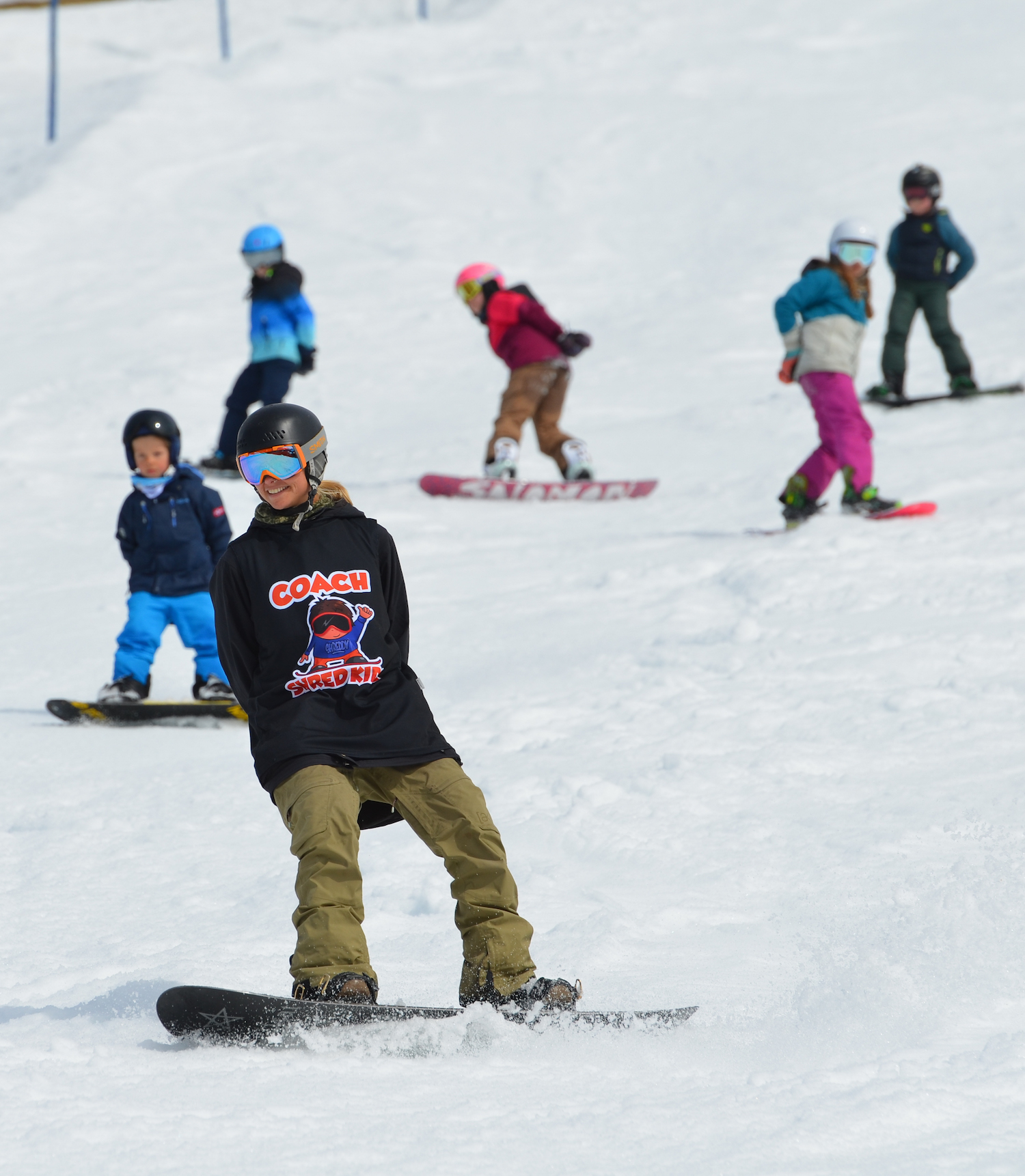 ersten Snowboardmoves mit den Shred Kids Coaches.
