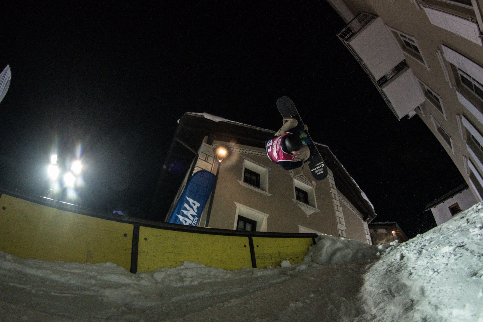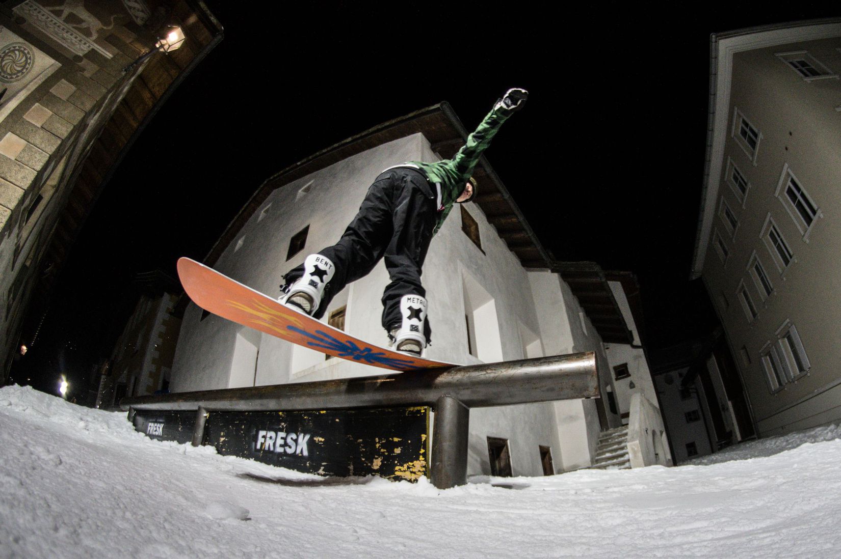 Beim legendären Street-Rail-Contest wird die alte Julierstrasse zur Bühne. Snowboarder:innen und Freeskier:innen liefern Tricks zum Anfassen – unter ihnen Snowboarder Jeremy Denda.