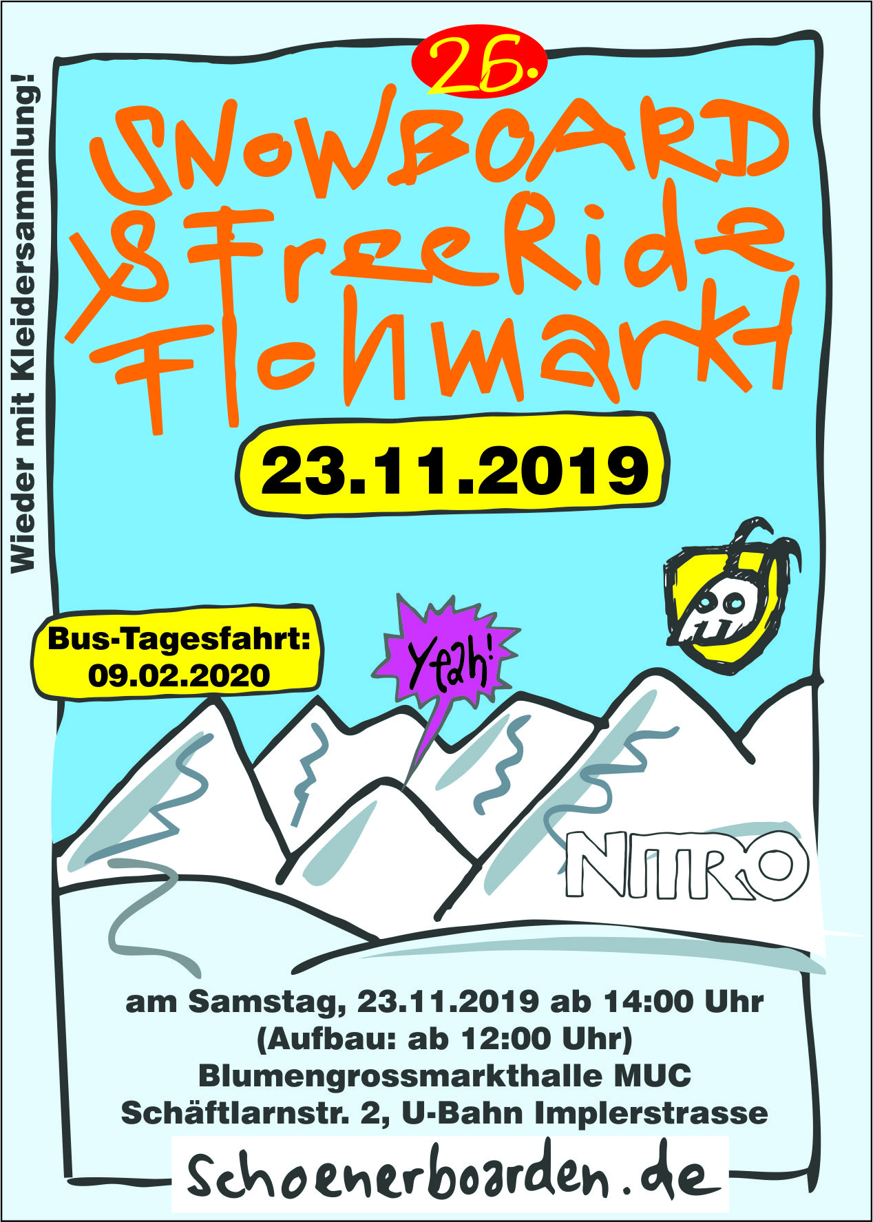 Am Samstag, den 23. November 2019 ab 14.00 Uhr veranstaltet der Snowboardverein schoenerboarden e.V. zum 26. Mal in Folge den legendären Münchner Snowboard-Flohmarkt.