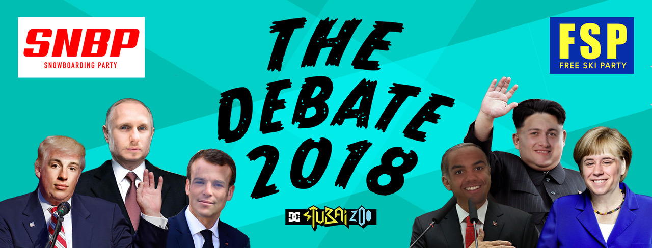 Noch bis zum 2. September könnt ihr für den Entwurf der Snowboard Partei (SNBP) online eure Stimme abgeben und damit Ethan Morgan, Lorenzo Peeters und Benny Urban (Slogan: “Make Snowboarding Great Again!”) unterstützen. Am 20. August 2018 moderierte Henry Jackson in Innsbruck den ersten Showdown der Kontrahenten, der live bei Instagram übertragen wurde.