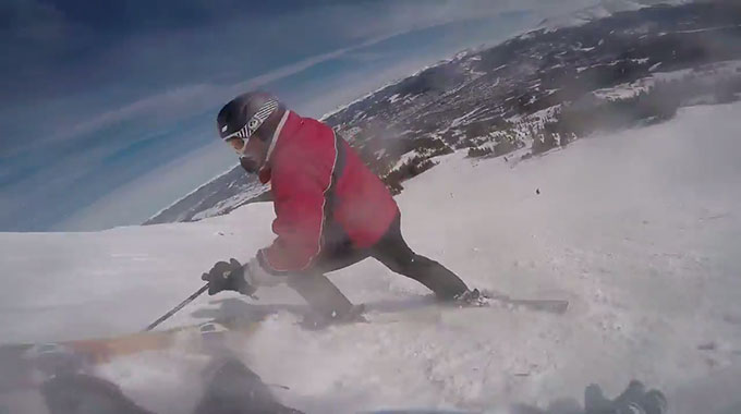 Ein Snowboarder verliert die Kontrolle und reißt einen auf der Piste stehenden Skifahrer mit sich. Der Mitgerissene akzeptiert anscheinend sein Schicksal unmittelbar…