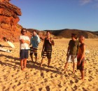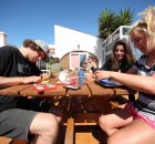 Langsam aber sicher legte sich der hefige Wind, der seit unserer Ankunft in Portugal über das Land fegte. Dementsprechend besser wurden die Bedingungen und die Motivation jedes Einzelnen. Nach einem sehr erfolgreichen Tag in Amado, an dem selbst die Frischlinge unter uns ihre ersten grünen Wellen anpaddeln konnten, kehrten wir am Abend mit einem fetten Grinsen zum „Pizza Pazza“ einem urigen Italiener in Pedralva ein.