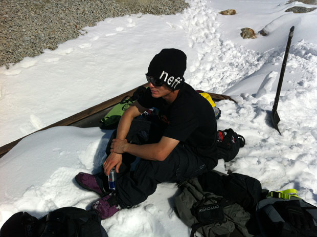 Schnell findet sich ein geeigneter Platz und die Arbeit beginnt: Alex Papis und Lukas Goller stoßen später hinzu.... trotzdem dauert die Schaufelei rund fünf Stunden.