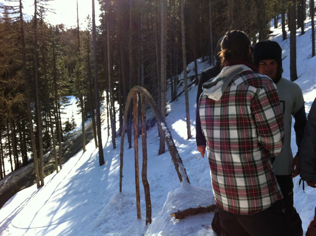Einen Tag zuvor konnten die Jungs dieses fette Holz-Rainbowrail vorbereiten...