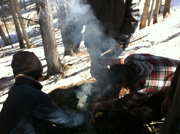 Wenn sich die Sonne verzieht kümmert man sich um das Mittagessen, schnell wurde ein Lagerfeuer entfacht...