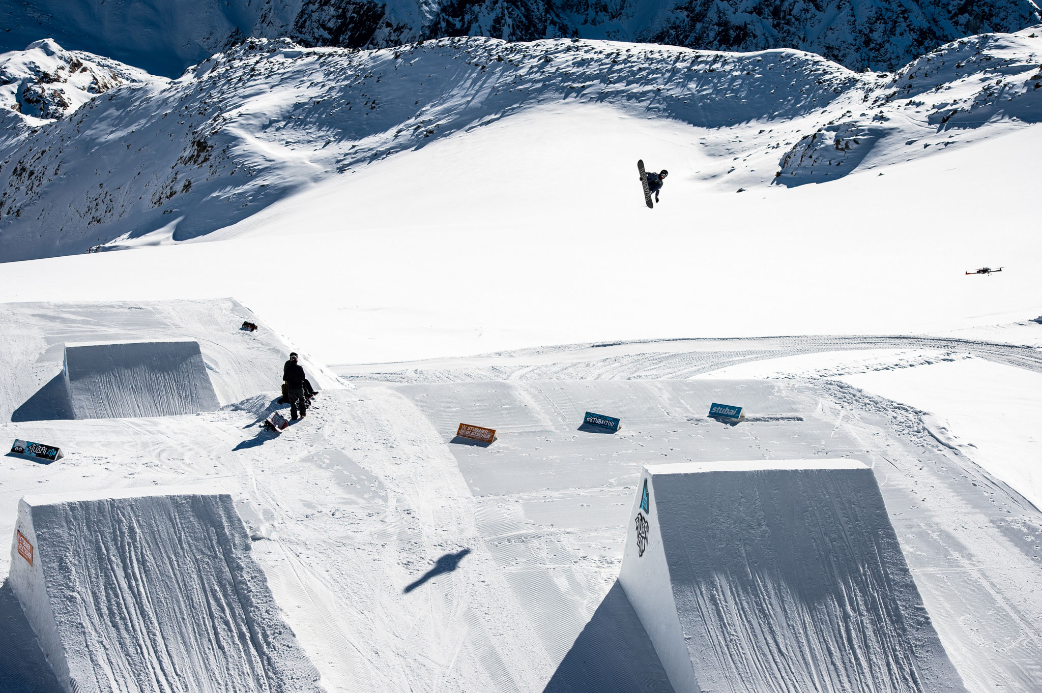 Das ist bereits das dritte Jahr, in dem die Prime Park Sessions in Stubai stattfinden und wenn es um Pre-Season Training geht, ist es momentan der place to be für die Créme de la Créme der Parkrider. Da die Prime Line nur gegen Bezahlung zu benutzen ist, ist sie reserviert für a) Rider, die sich sicher durch diese Monster navigieren können und b) für Rider oder Nationalteams mit tiefen Taschen. Aber es ist ja auch nicht gerade billig, solche Massen an Schnee herumzuschieben..