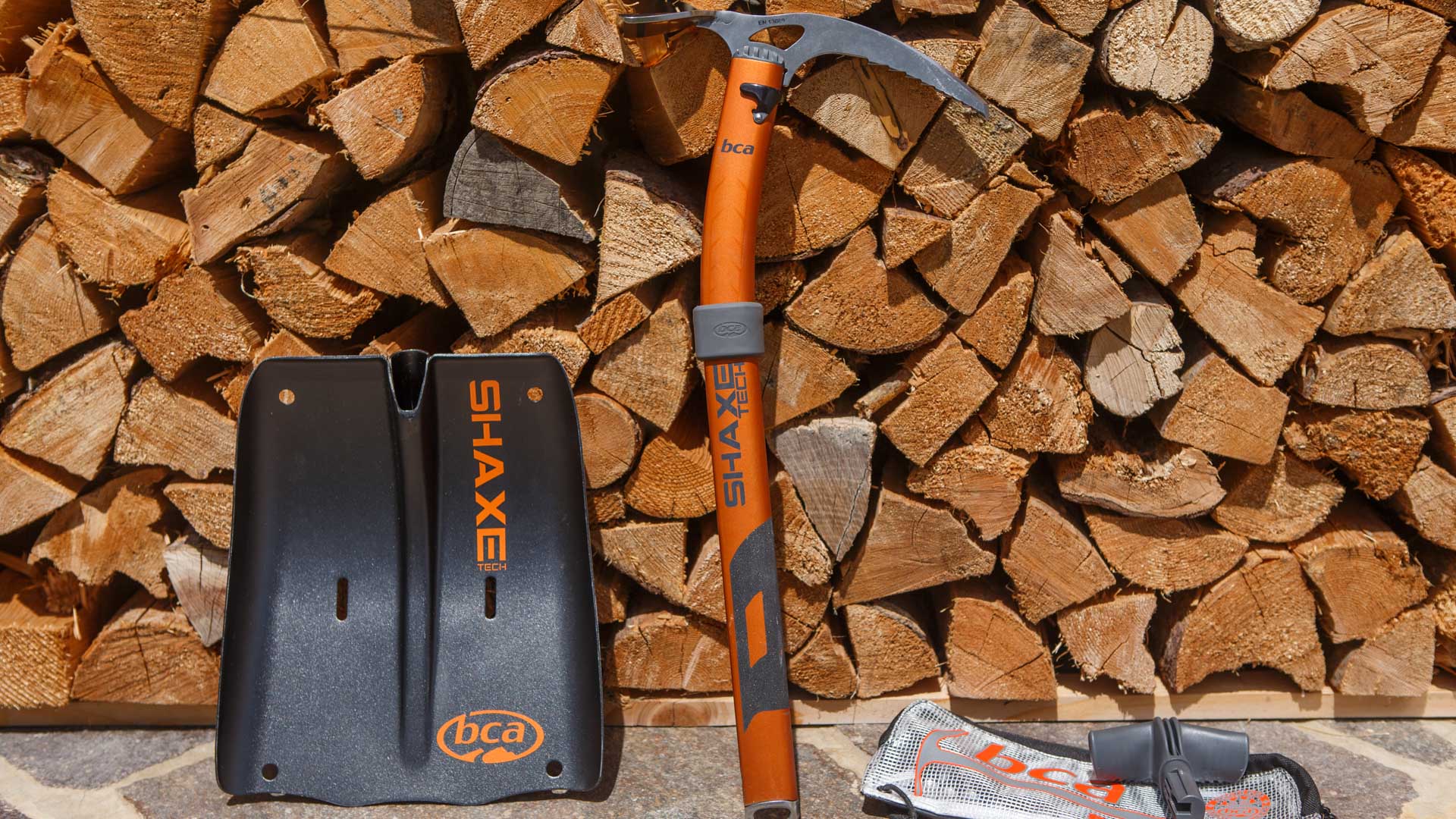 Soviel zum Eispickel, nun zur Schaufel: BCA hat so viel Technologie in eine eigentlich simple Schaufel gepackt, dass es ziemlich überraschend ist, wieviel dieses Ding kann. Zusätzlich zu der ausgetüftelten Ergonomie am Griff, die es praktisch verhindert, dass sich die Schaufel beim Graben verdreht, kann das Schaufelblatt an sich als Schneeanker verwendet werden und es wird sogar ein Kit mitgeliefert, mit dem du die ganze Sache zum Rettungsschlitten umfunktionieren kannst! Man muss es gesehen haben, um es zu glauben.