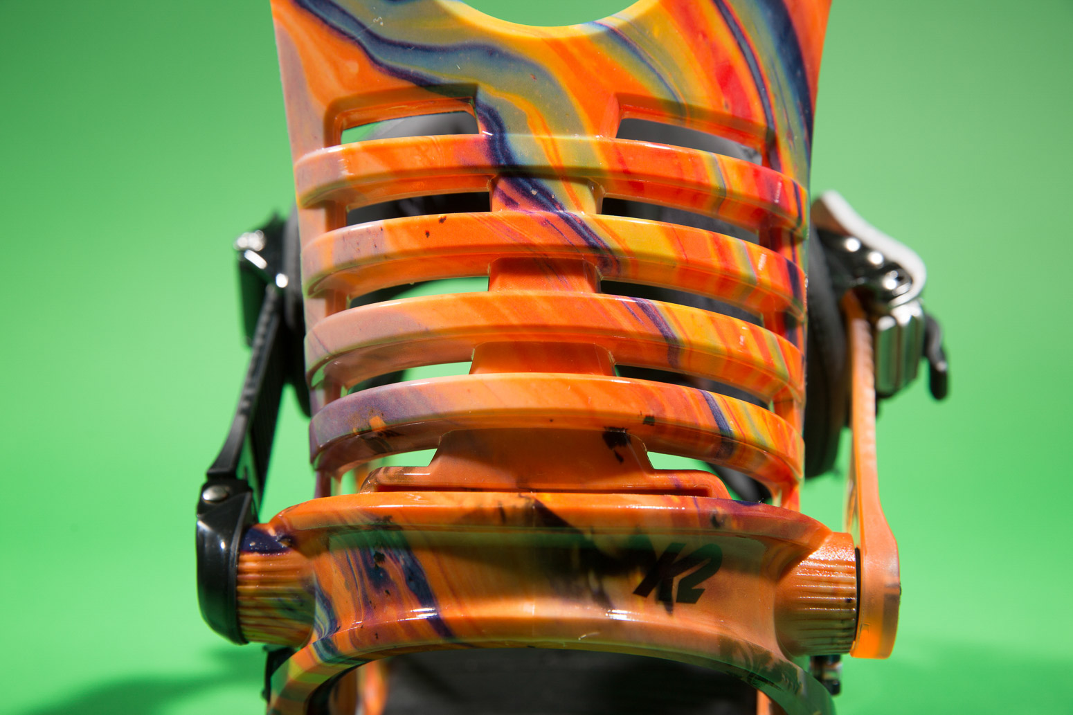 Das Highback ist auch aus Urethan gemacht und bietet dir jede Menge Support, ohne dass sie dich beim Tweaken einschränkt. Der Regler für die Vorlage ist auf der Seite des heelcups angebracht, sodass sie weniger Masse (und dadurch weniger Gewicht) an der Rückseite hat.