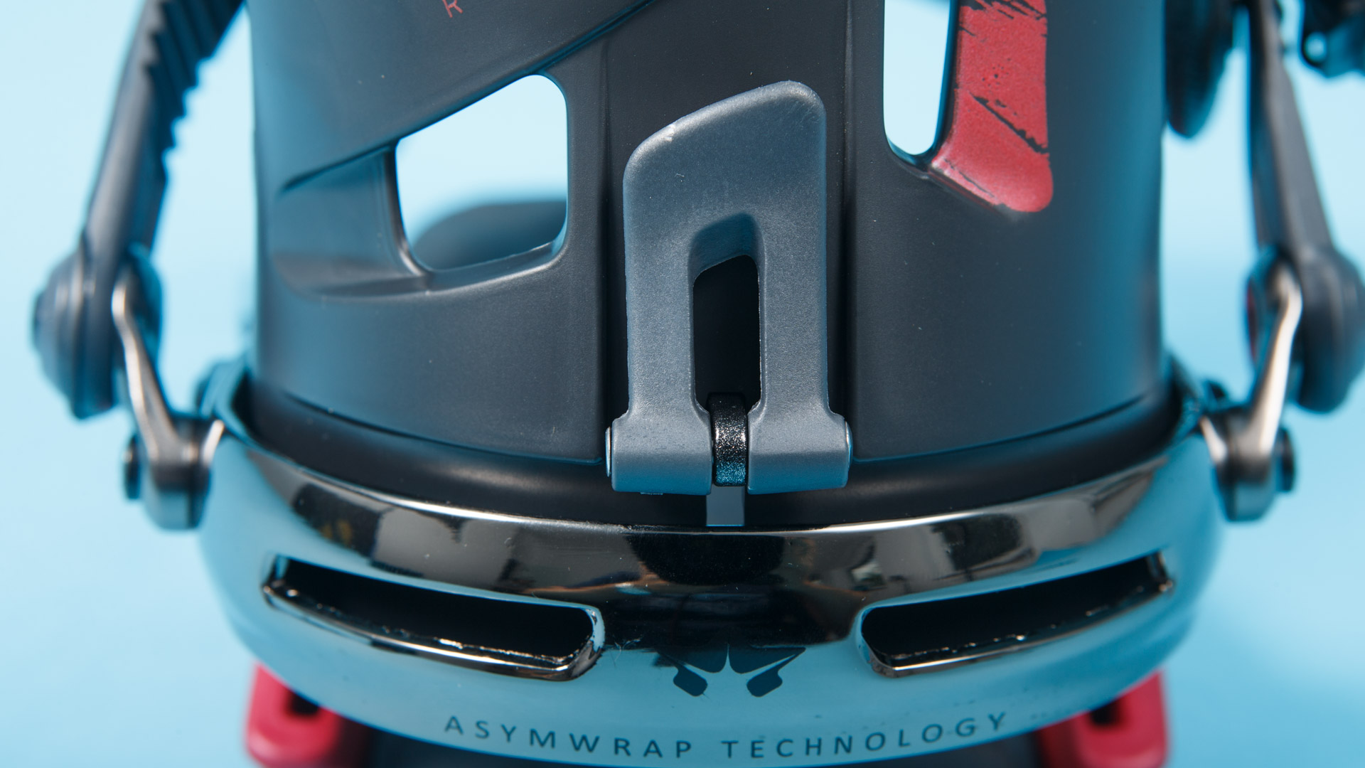 Was diese Bindung einzigartig macht, ist vor allem, wie sie die Steifheit im Kantenwechsel und den Flex von Nose zu Tail unterstützt. Zwei Features ermöglichen das: Einmal ist das Alu Chassis kürzer auf der Außenseite als auf der Innenseite. Während ihr zwar keine Kraft für den Kantenwechsel verliert, ermöglicht euch die Bindung mehr Spielraum, das Brett längs zu flexen.