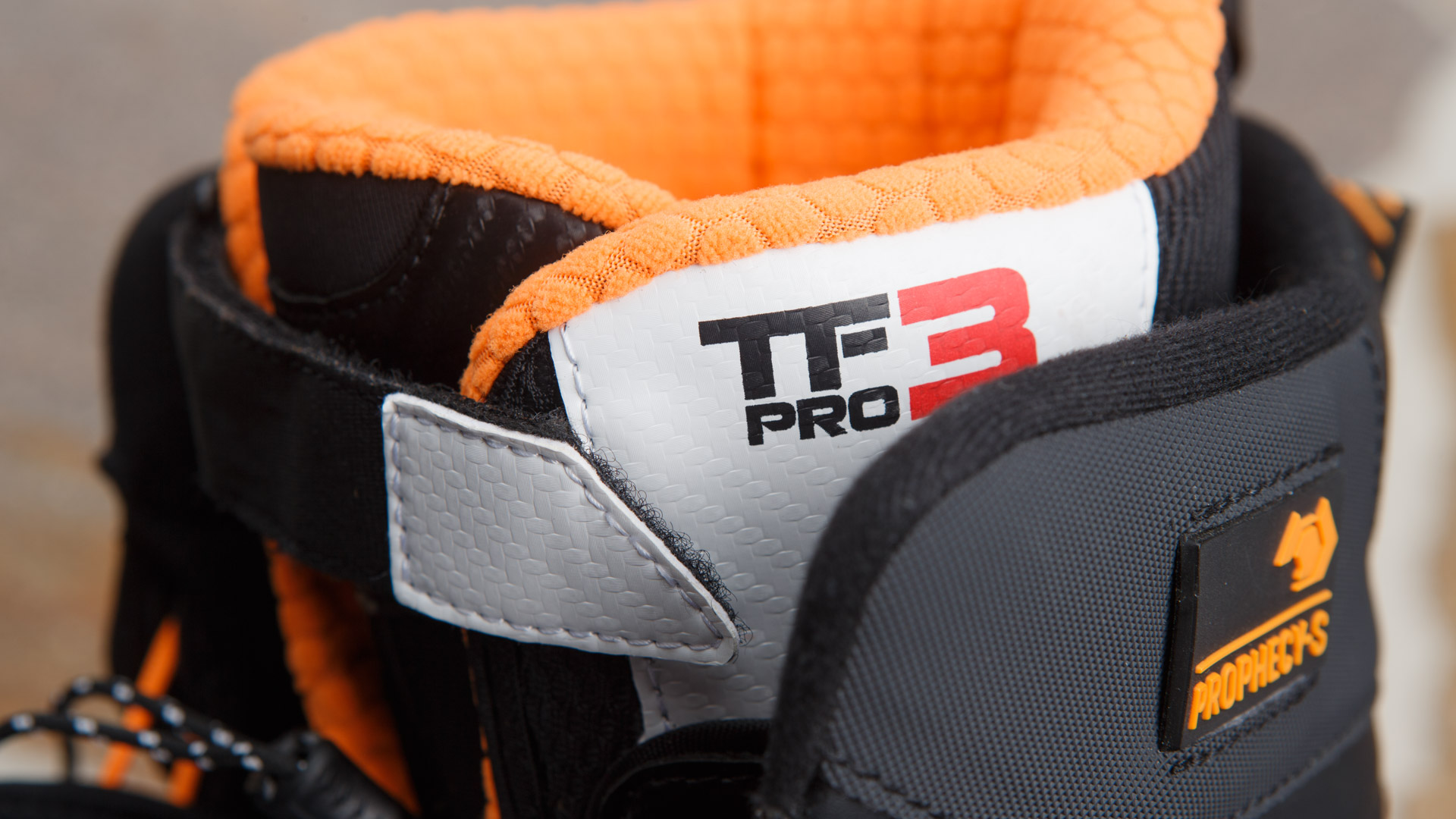 Northface hat sogar ihr eigenes TF3 Außenmaterial umstrukturiert, um an das neue Schnürsystem anzupassen. Es funktioniert wie ein Korsett – der Druck wird gleichmäßig auf den Außenschuh übertragen, wenn man am Schnürband zieht. Am oberen Schuhende wurde ein extra Powerstrap zur Schnürung versehen. Die zwei Systeme greifen nahtlos ineinander, um so für optimale Passform zu sorgen. Der Rest der TF3 Features sind das EVA Fußbett, die auf Beweglichkeit ausgelegte Polsterung, der an den Fuß anpassende Schaum und vieles mehr