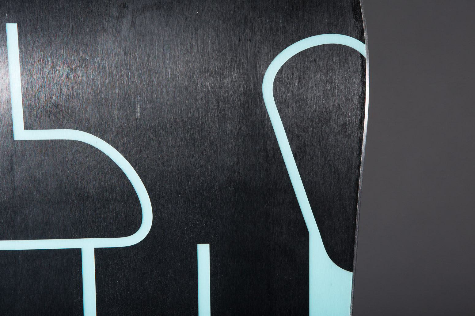 Es ist nicht schwer zu erraten, dass es sich dabei um ein True Twin handelt, doch es unterscheidet sich auf signifikante Art von anderen Freestyle Sticks: An jedem Ende des Boards ist die Base in drei Bereiche unterteilt — durch die Mitte verläuft ein flacher Channel, der an beiden Seiten leicht abgeschrägt ist.