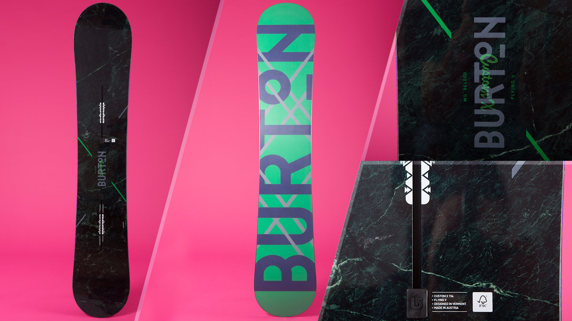 Das Burton Custom X Flying V hat all den High-End Schnickschnack der Camber Version. Es sind Carbon Stringer eingebaut, die es steif wie die Hölle werden lassen (auf eine positive Art und Weise) ohne es schwerfällig zu machen. Zusätzlich ist eine komplette Schicht Carbon eingelassen, wodurch die Edge-to-Edge-Response verbessert wird. Es hat einen hochqualitativen, gesinterten Belag und eine gute Vorspannung die es schon beim Auspacken zum Leben erwecken lassen.