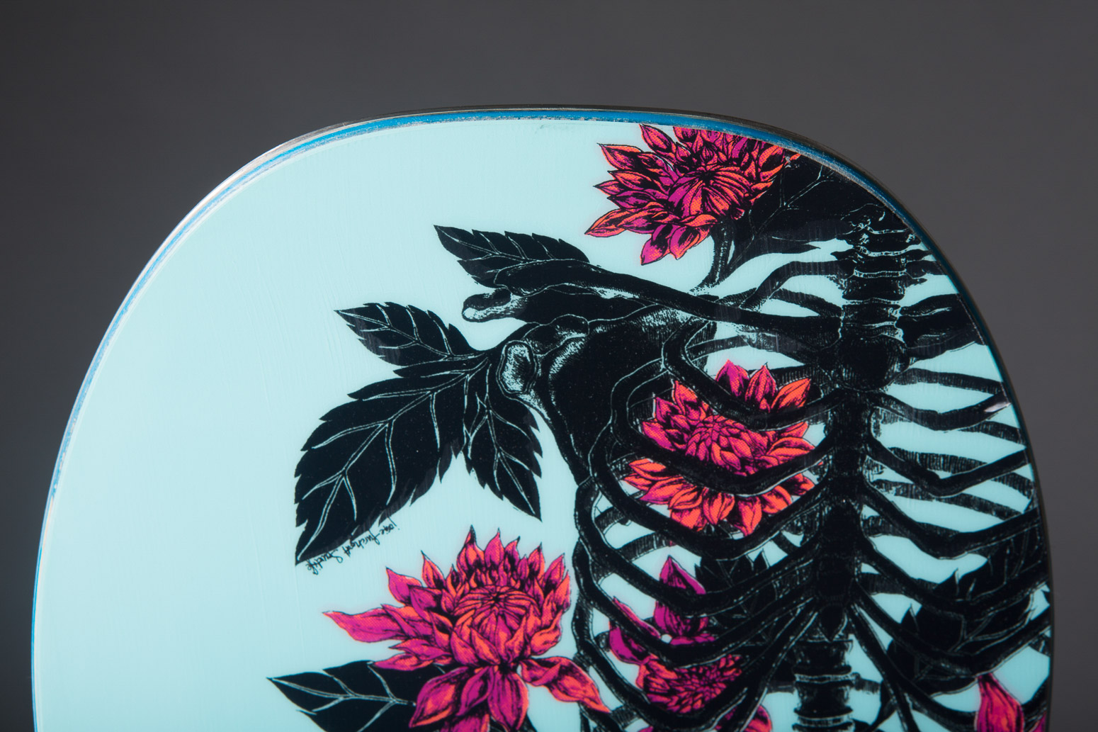 Der Kern hat ein asymmetrisches Element mit dünneren Abschnitten, die Burton „Squeezebox“ nennt, in Richtung Nose und Tail anstatt mittig über das ganze Board verteilt. Zusätzlich sind die Kontaktpunkte — mit einem leichten Vorsprung für Extra-Grip — an der Zehen- und der Fersenkante an verschiedenen Stellen platziert und passen sich somit besser an die Unterschiede der beiden Turns an.