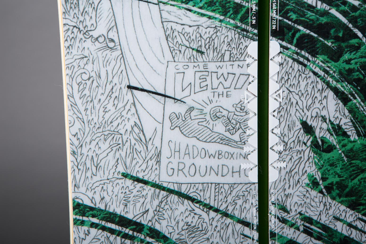 Es ist genügsam, aber dir wird auffallen, dass die Kontaktpunkte ein bisschen länger sind als bei den meisten Burton Boards. Das bedeutet, dass sich die Kante — wenn du es wirklich willst — wie verrückt in die Piste krallt. Die Gesamt-Oberfläche an Nose und Tail ist ebenfalls größer, wodurch es leichter durch den Powder gleitet als ein gewöhnliches Twin Tip.