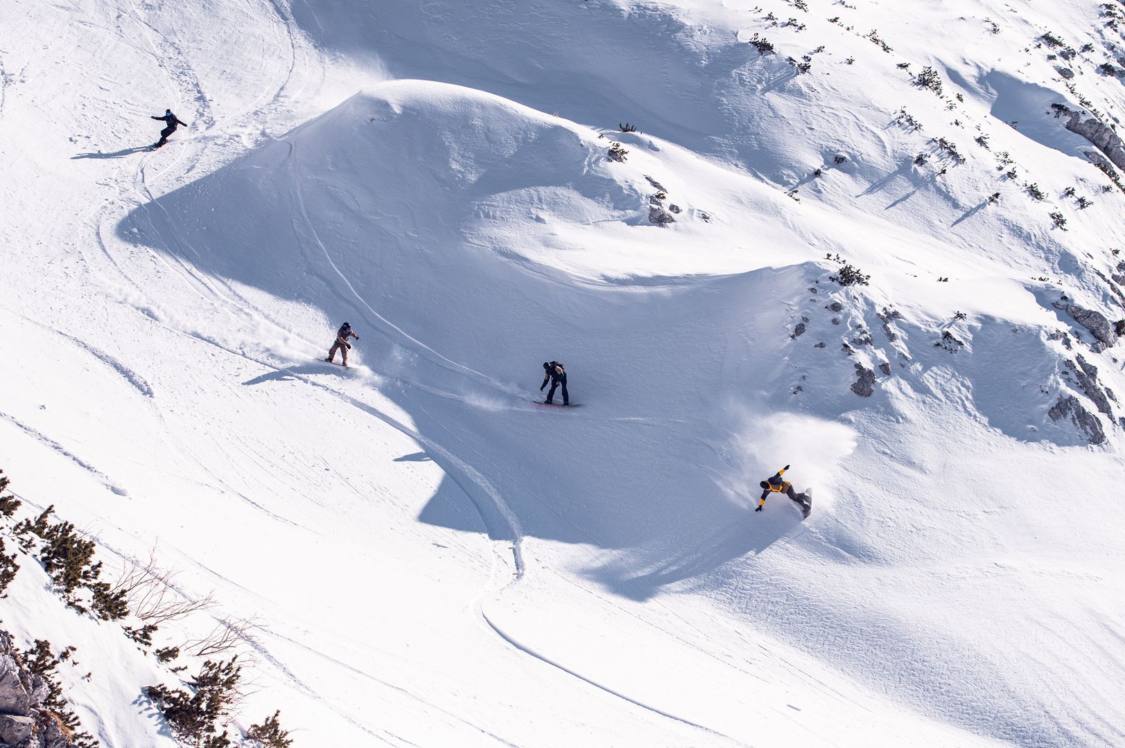 Wenn ihr im Lift den Berg rauffahrt und dann ins Gelände wollt, solltet ihr ein Snowboard wählen, das genau dafür geeignet ist. Freeride-Snowboards sind speziell darauf ausgelegt, dir maximale Kontrolle und Freiheit im unpräparierten Gelände zu bieten. Sie zeichnen sich durch eine breitere Bauweise aus, die für bessere Auftriebseigenschaften im Powder sorgt, während gleichzeitig die Stabilität und Agilität auf unterschiedlichen Schneebedingungen gewährleistet wird.