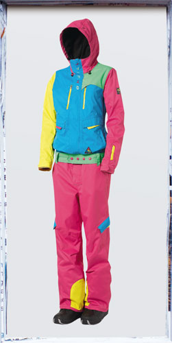 Als Jack O’Neill 1952 mit der Erfindung des Neoprenanzugs das kalifornische Label gründete, malte er sich sicher nicht aus, wo seine Firma knapp 60 Jahre später stehen würde. Zur ISPO 2011 präsentiert O’Neill erneut einen Anzug, dieses Mal für Mädels und für die kalten Tage des Jahres. Mit 10.000 Millimetern Was- sersäule, verklebten Nähten und Kapuze haben es die Ladys in diesem Overall sicher schön warm, und falls es zu heiß wird, können die Belüftungsschlitze geöffnet werden, um für Durchzug zu sorgen. Mit separaten Taschen für iPod, Goggles und Liftticket besitzt das knallige Teil alles, was das Herz begehrt.