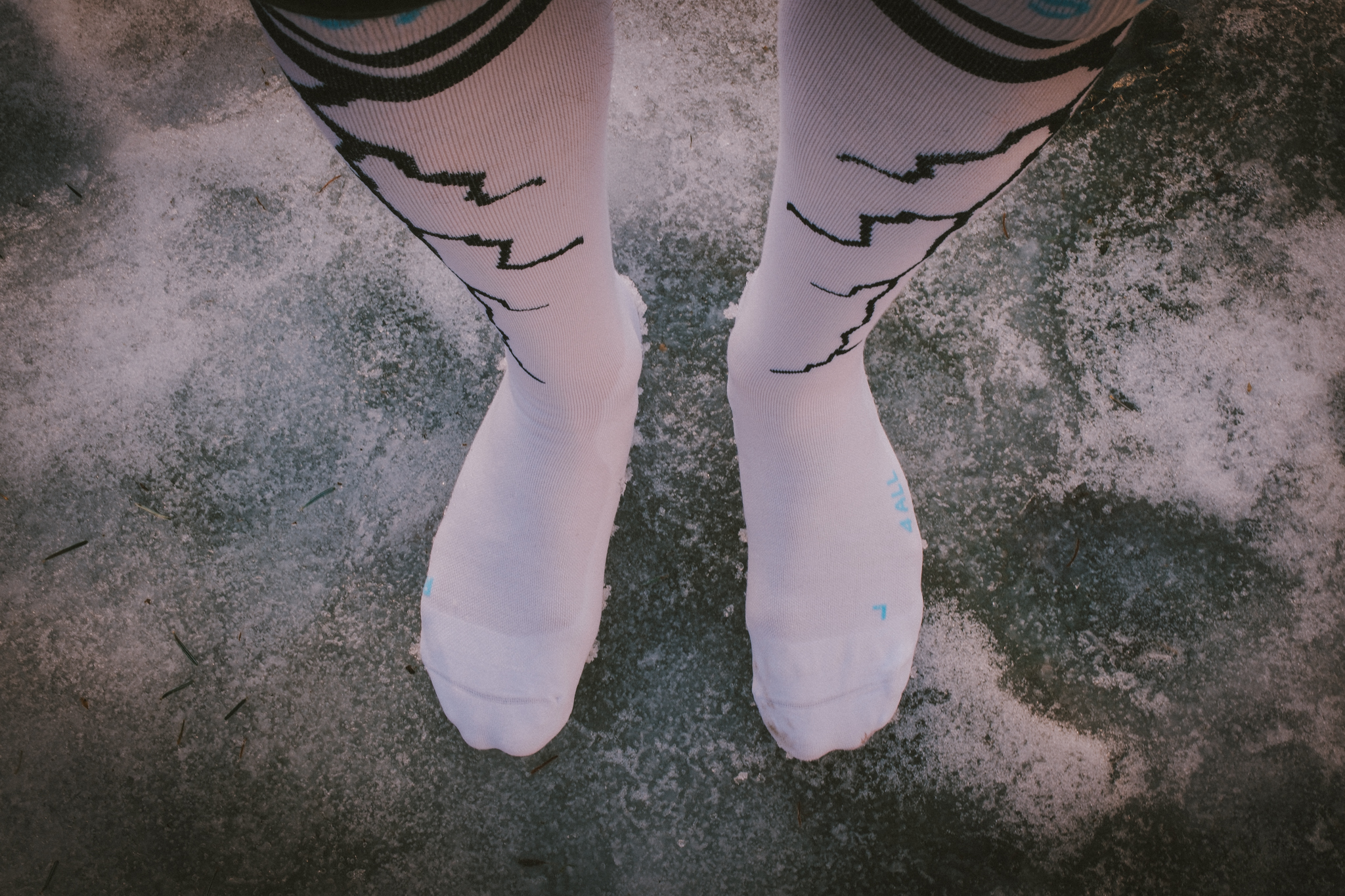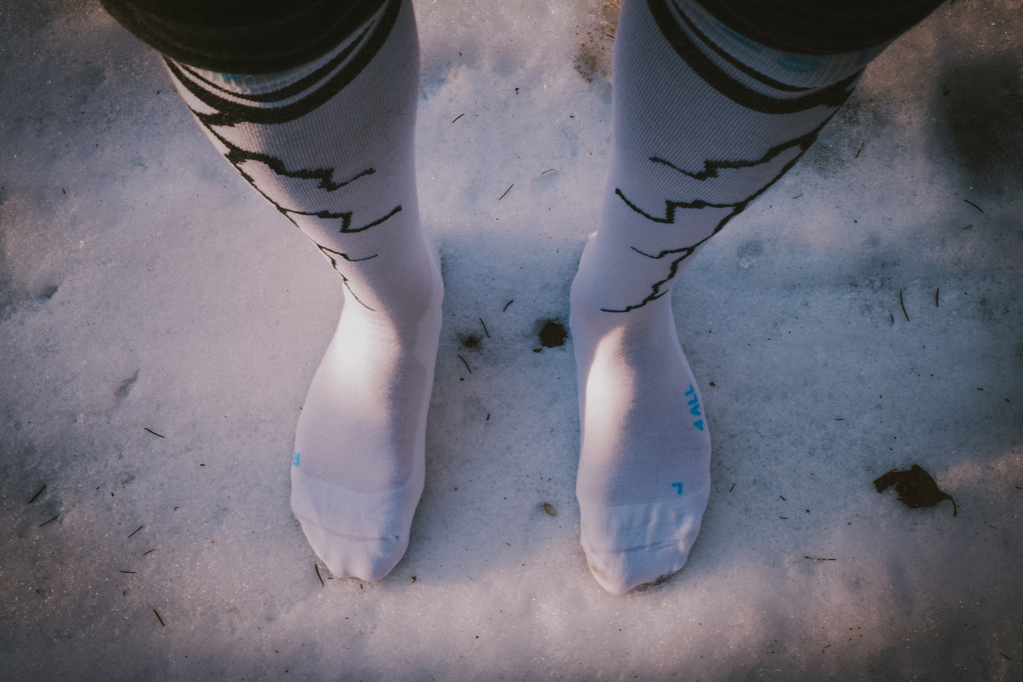 Unabhängig von Fahrstil, Boot-Setup oder Einsatzbereich wurde vor allem der angenehme Druck, die stabile Passform und das reduzierte Ermüdungsgefühl hervorgehoben. Bereits beim Anziehen fällt auf, wie gleichmäßig der Druck verteilt ist. Die Kompression schont die Gefäße spürbar, ohne einzuengen. Besonders deutlich wird dieser Effekt nach der Session. Beim Ausziehen der Socken stellt sich ein sehr wohltuendes Gefühl ein, das man vor allem nach langen Snowboardtagen schnell zu schätzen lernt.
