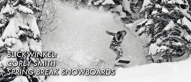 Die Gegend rund um Tahoe hatte wochenlang keinen Schnee zu Gesicht bekommen, als Corey Smith Anfang des Jahres auf die Idee kam, aus Langeweile heraus ein eigenes Snowboard zu bauen. Der Grundgedanke war, mit einfachsten Materialien ein funktionierendes Brett zu bauen, das man im Powder fahren könnte. Geraume Zeit später kam der lang ersehnte Schneeeinbruch und Corey merkte schnell, dass er ein unglaubliches Board geschaffen hatte. Spring Break Snowboards war geboren, weitere Bretter mit zuvor noch nie gesehenen Shapes folgten. Beim Anblick der Boards kommen Erinnerungen an die Anfänge des Snowboardens auf, bei denen es in erster Linie um Freiheit und Experimentierfreudigkeit ging – so wie heute bei Spring Break Snowboards. Hatte er selbst schon durch zahlreiche Verpflichtungen den Spaß am Snowboarden etwas verloren, schaffte es Corey, sich mit einfachsten Mitteln die Liebe und Leidenschaft zurückzuholen. Jeder, der das Video von Spring Break Snowboards gesehen hat, das Smith im Frühjahr veröffentlichte, ist schlichtweg begeistert. So viel Kreativität und Spaß hat uns neugierig gemacht! Wir kontaktierten Corey, damit er uns seinen „Blickwinkel“ zu Spring Break Snowboards erzählt.