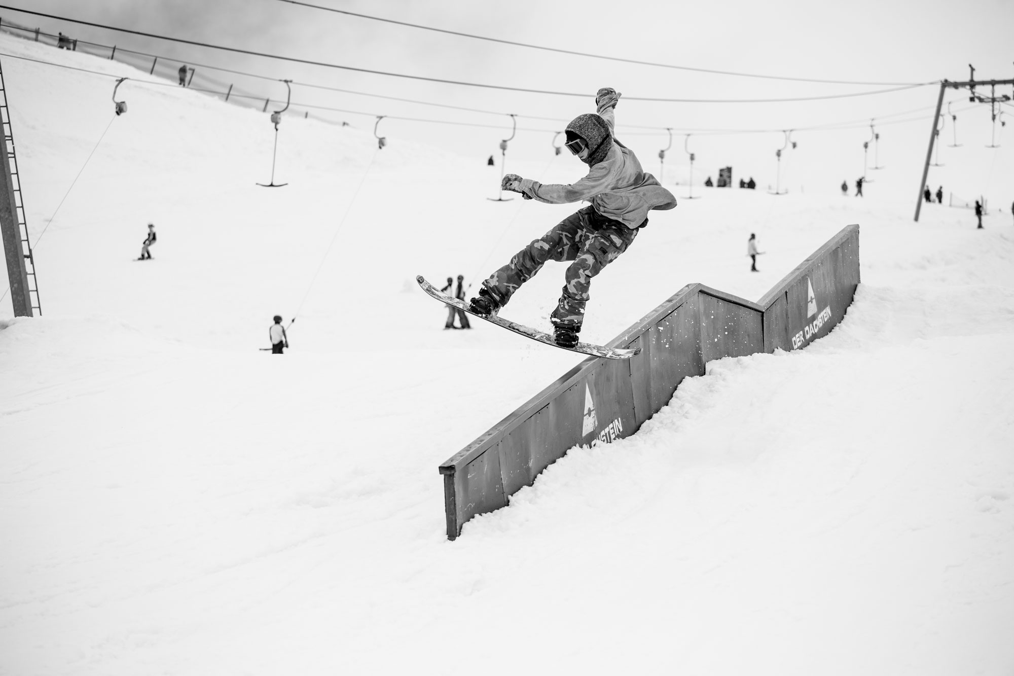 Wenn ihr ein Dude seid, der auf Pro Lines steht, dann braucht ihr ein Freestyle-Board das steif ist, viel Pop hat und über eine gute Response verfügt. Das Process ist die Wahl von Mark McMorris und natürlich Clemens selbst. Ihr könnt also mit Sicherheit davon ausgehen, dass es jeden Kicker mit Leichtigkeit wegsteckt. Clemens stimmt zu, aber er jibbt auch mit diesem Brett. „Ich mag steife und aggressive Camber Boards für große Kicker, genau wie das Process. Aber ich mag sie auch auf Rails, denn ein Nose-Press mit einer weichen Banane ist ja fast schon Betrug.”